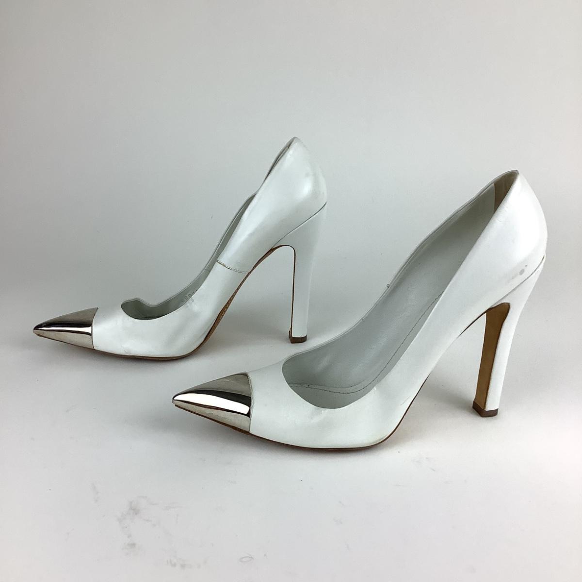 Louis Vuitton pointed toe pumps with silvertone toe caps, Made in Italy.