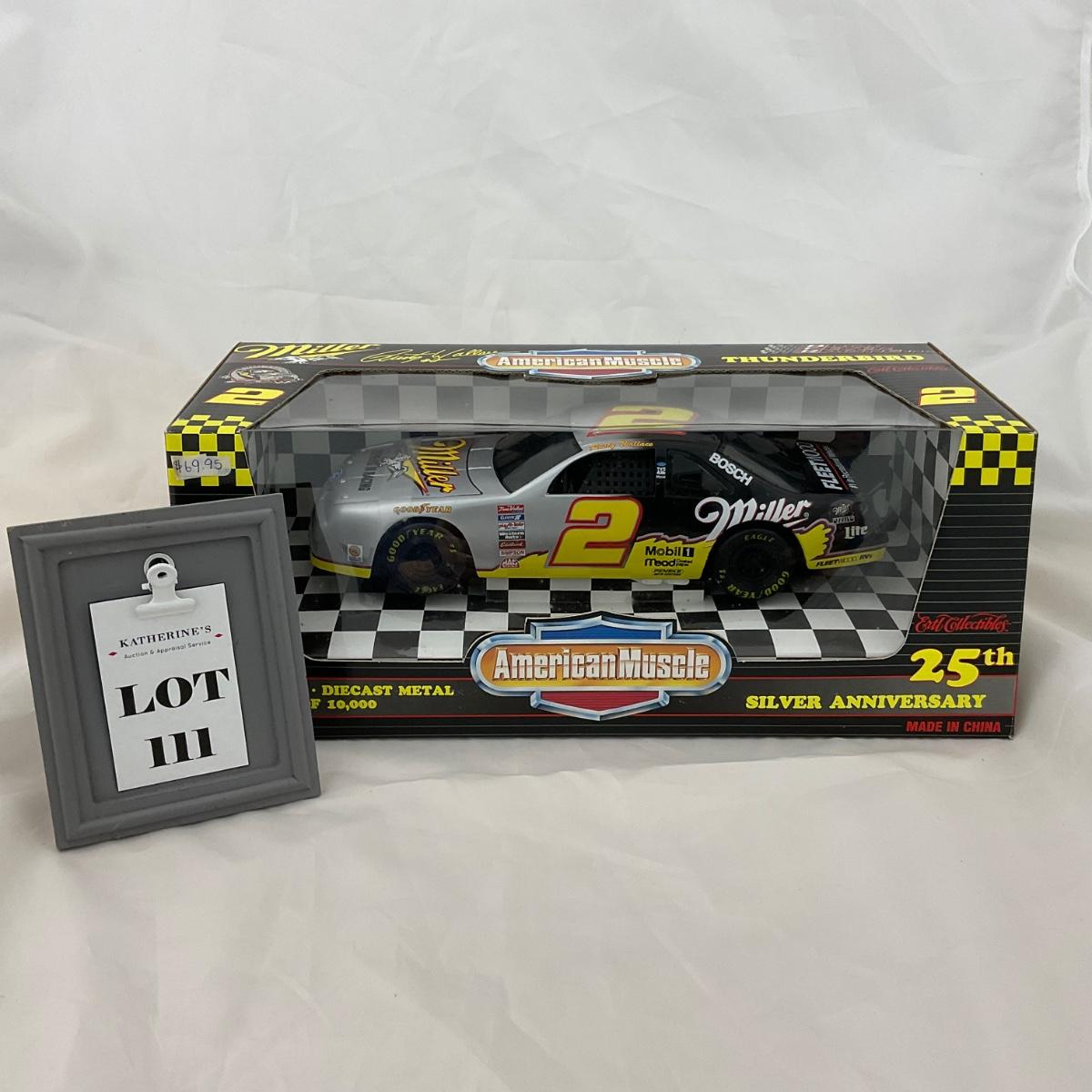 One NASCAR die cast 1:18 scale Miller Thunderbird 25th Silver Anniversary in box. Please see photos for details and condition. ::: Shipping is available on this lot. If you require shipping you must let us know at the close of the auction. We will coordinate with you after the item has been won. Shipping fees will include insurance up to or exceeding the value of all items being mailed. If you have any questions regarding this lot please contact the auctioneer either via this website, by direct email or by phone. PICK UP TIMES and other important information can be found in the TERMS and DESCRIPTION of the auction. Please take a look for pertinent information. Thanks!