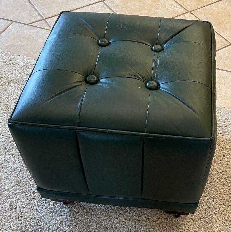#111 Rolling Green Leather Ottoman Square B