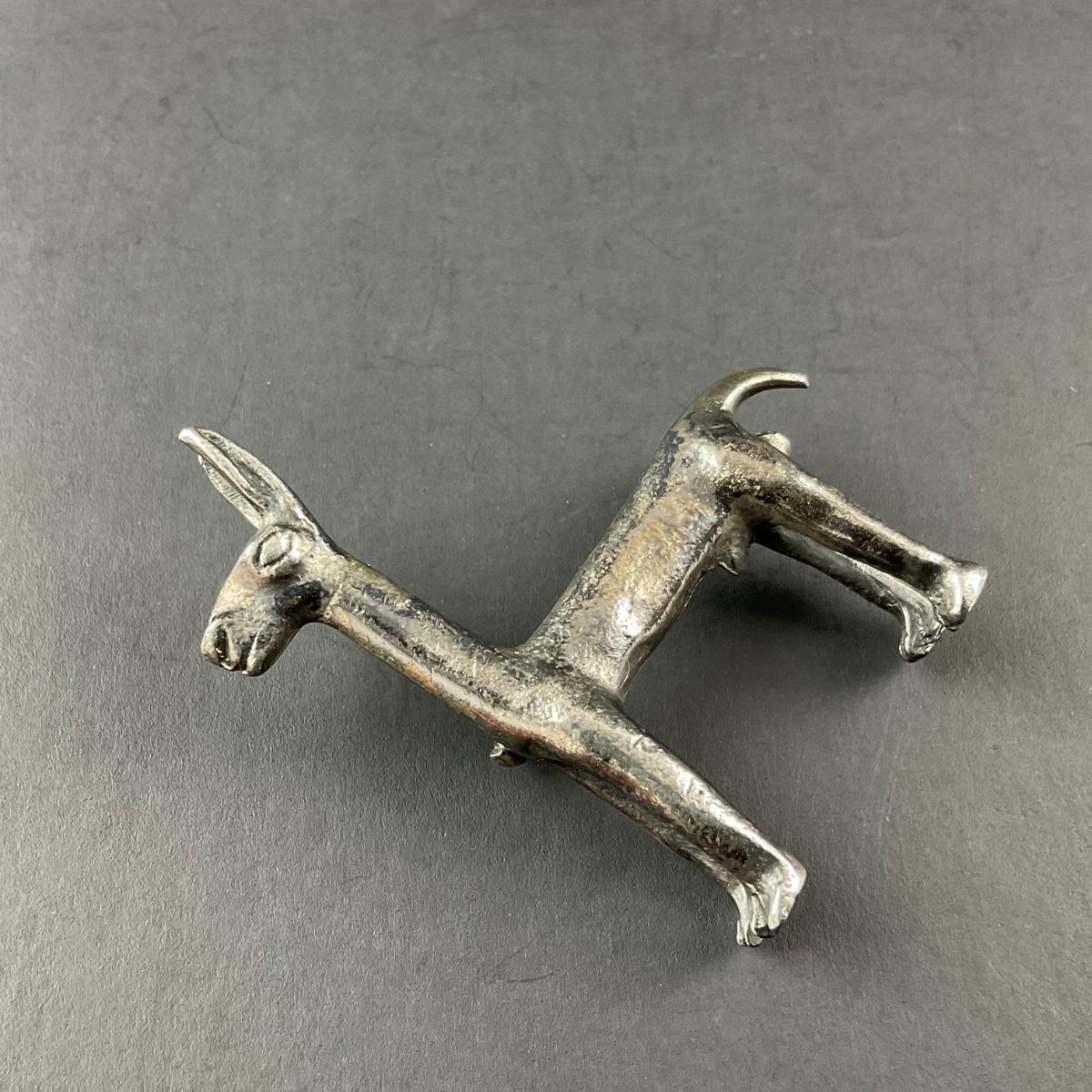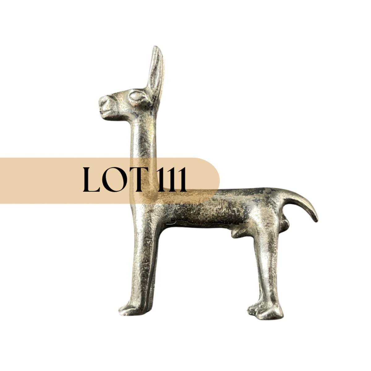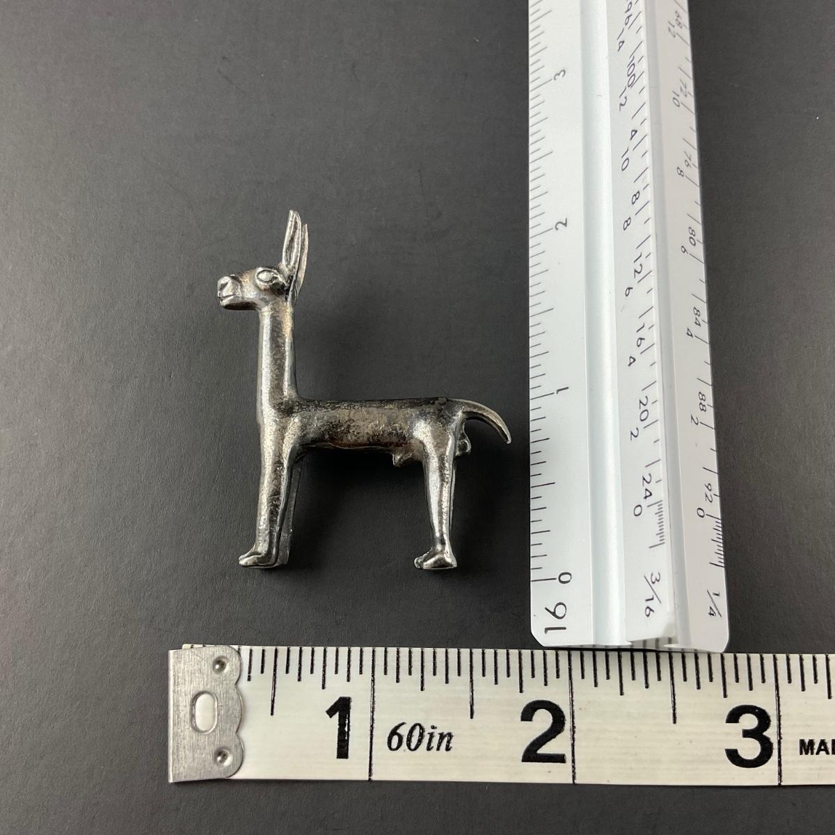 One unmarked sterling silver llama pin. Weight of the llama pin is 14 grams. This piece has no damage, and appears to be in great shape with no visable chips, cracks, or broken pieces. Please see photos for details and condition. Any condition statement is given as a courtesy to a client, is an opinion, and should not be treated as a statement of fact. Reference to condition written, oral or within a condition report shall not be regarded as a full account of condition and may not include all defects, alterations, or restorations. Absence of a condition report does not imply a lot is flawless or lacking imperfections or damage. Katherine’s Auction & Appraisal Service shall have no responsibility for any error or omission. Returns shall not be accepted on the basis of condition. ::: Shipping is available on this lot. If you require shipping you must let us know at the close of the auction. We will coordinate with you after the item has been won. Shipping fees will include insurance up to or exceeding the value of all items being mailed. If you have any questions regarding this lot please contact the auctioneer either via this website, by direct email or by phone. PICK UP TIMES and other important information can be found in the TERMS and DESCRIPTION of the auction. Please take a look for pertinent information. Thanks!