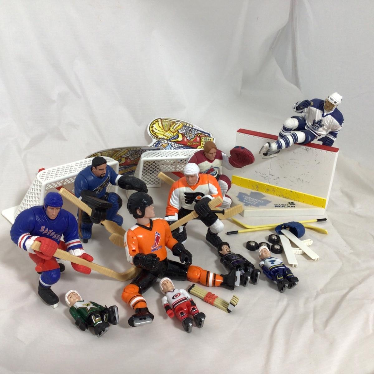 Mixed group of hockey toys and figures some with displays. Please see photos for details and condition. ::: Shipping is available on this lot. If you require shipping you must let us know at the close of the auction. We will coordinate with you after the item has been won. Shipping fees will include insurance up to or exceeding the value of all items being mailed. If you have any questions regarding this lot please contact the auctioneer either via this website, by direct email or by phone. PICK UP TIMES and other important information can be found in the TERMS and DESCRIPTION of the auction. Please take a look for pertinent information. Thanks!