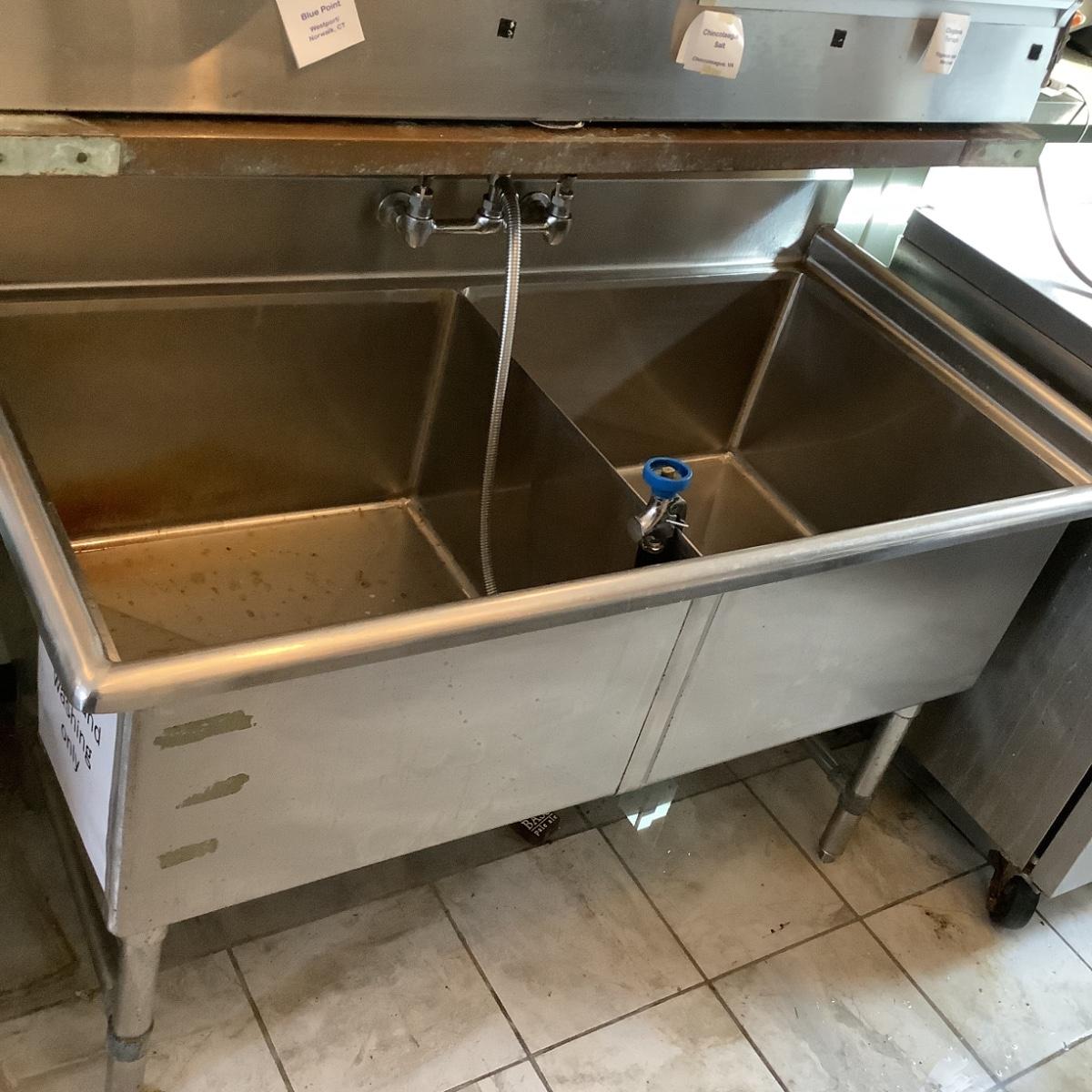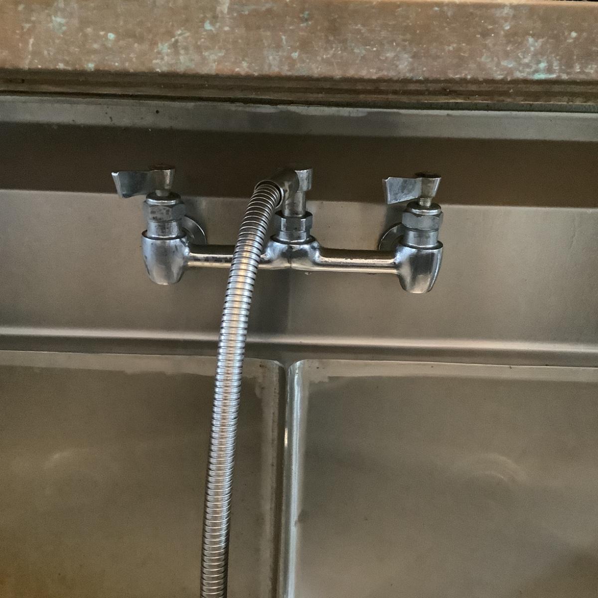 111 Stainless Steel Two Compartment Sink Hot & Cold Backsplash Mount with Pre-Rinse Hose