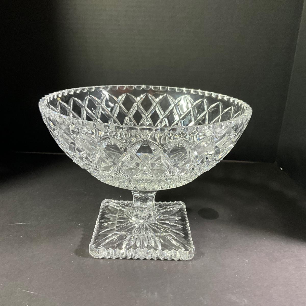 1111 Antique Square Base Bohemian Crystal Pedestal Bowl
