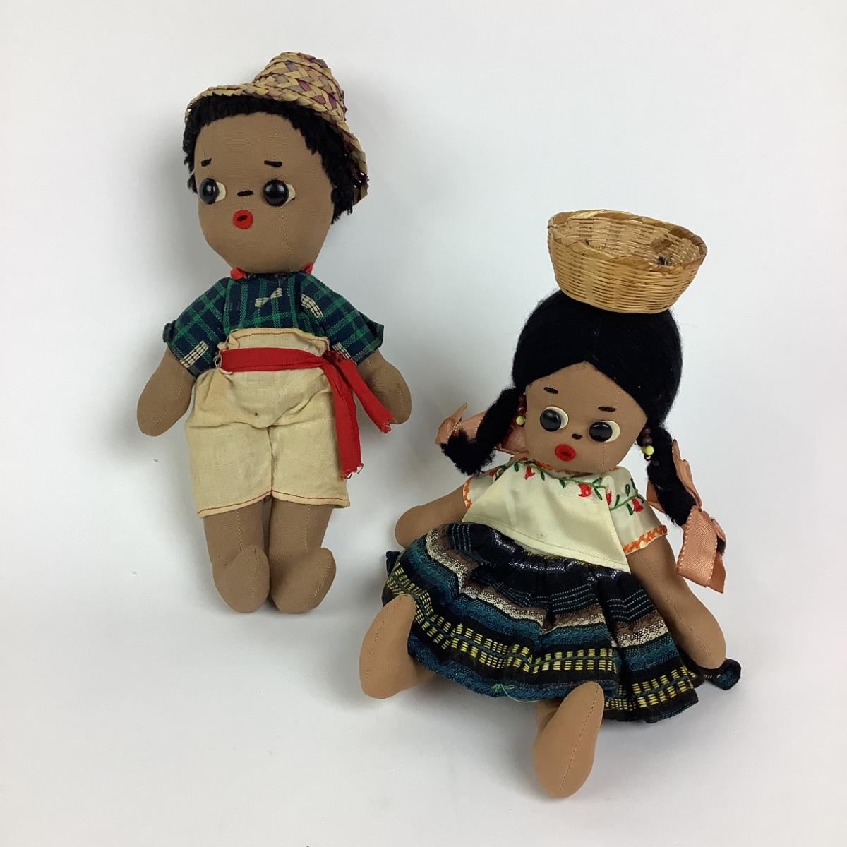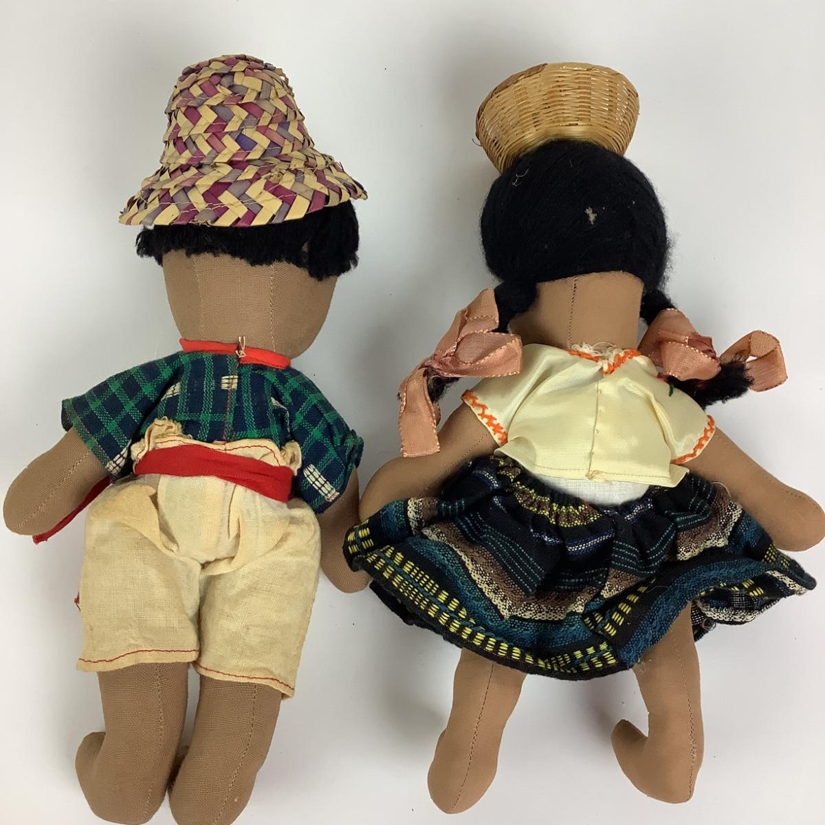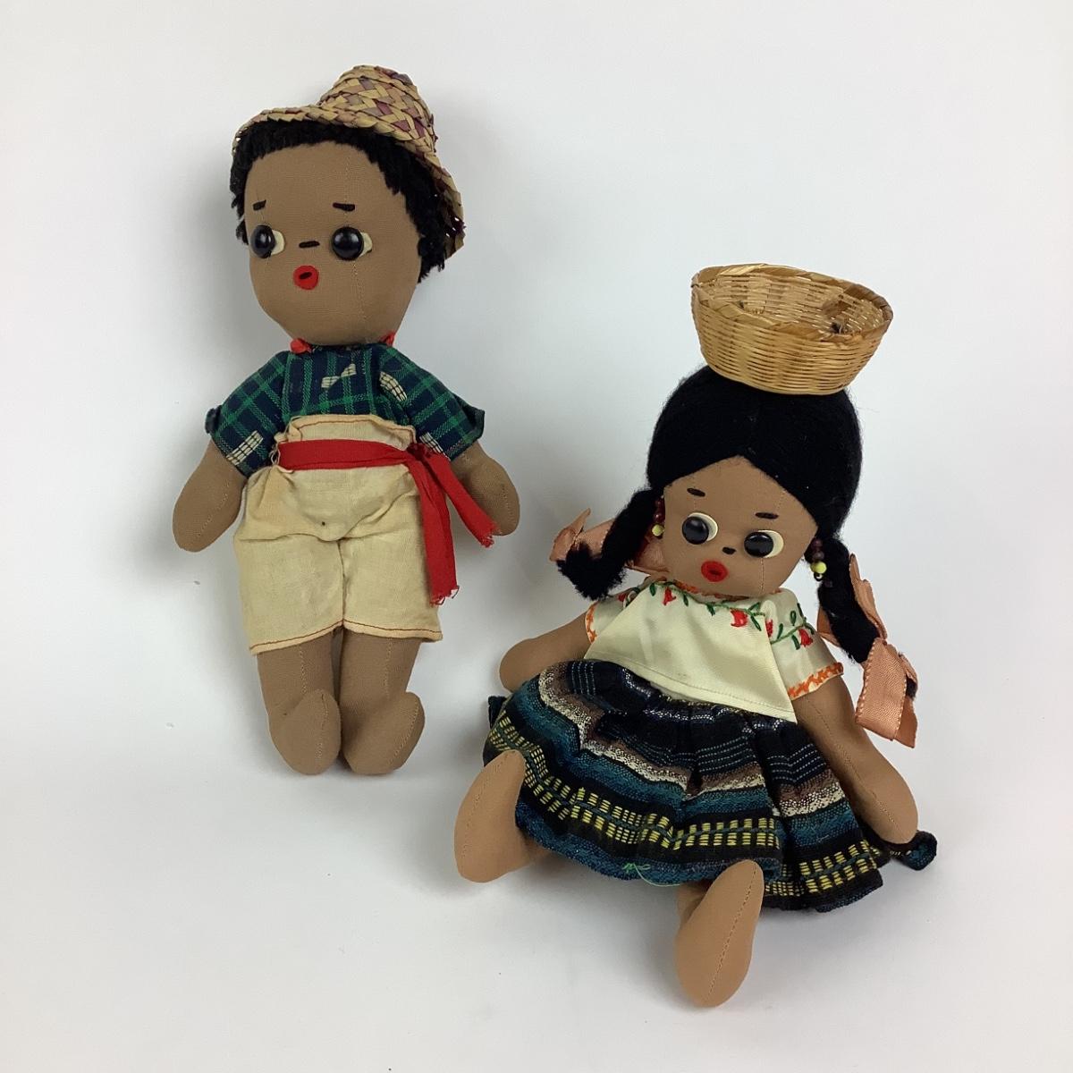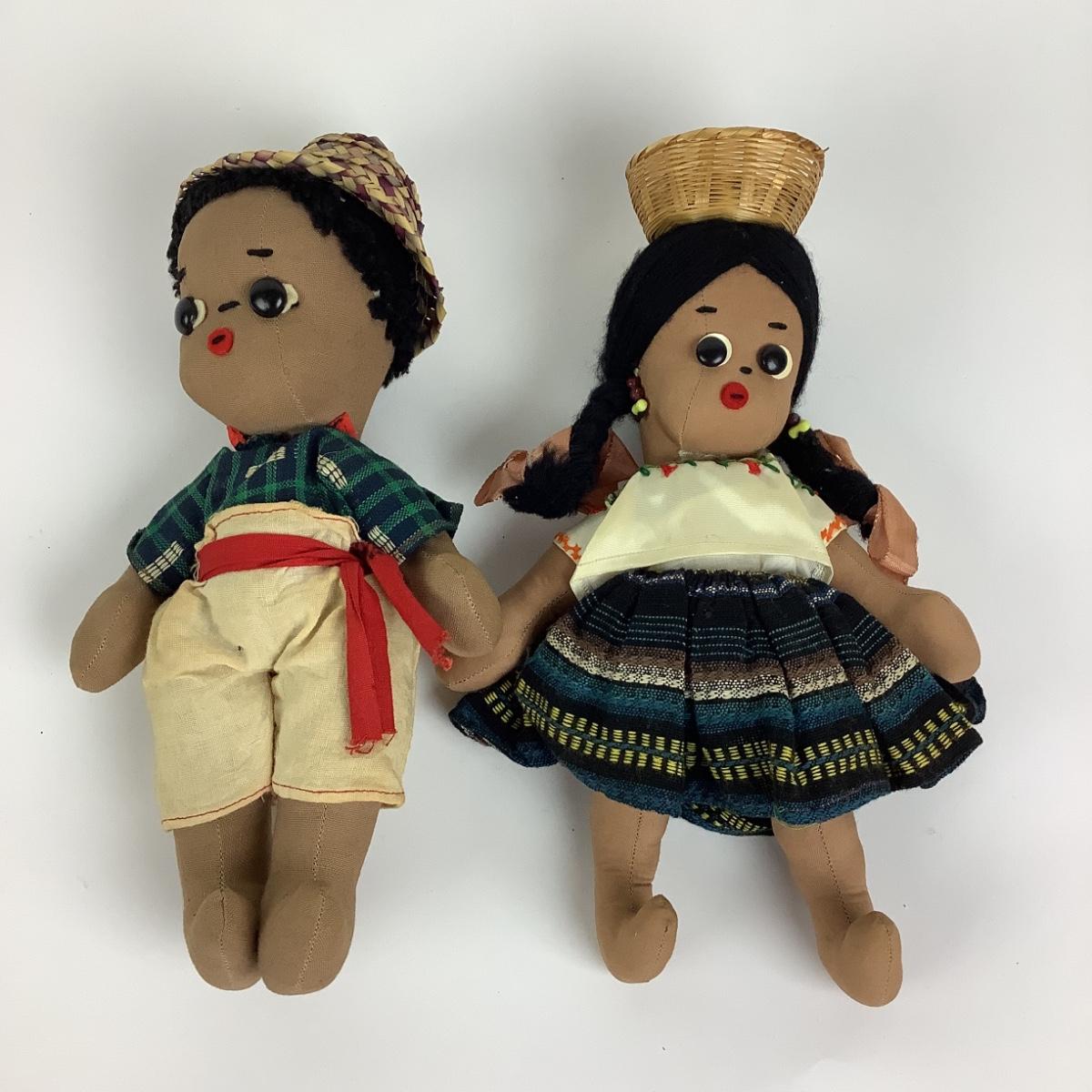 The dolls are cotton stuffed with button eyes, they measure 12" Boy and the girl is 9.5" tall.