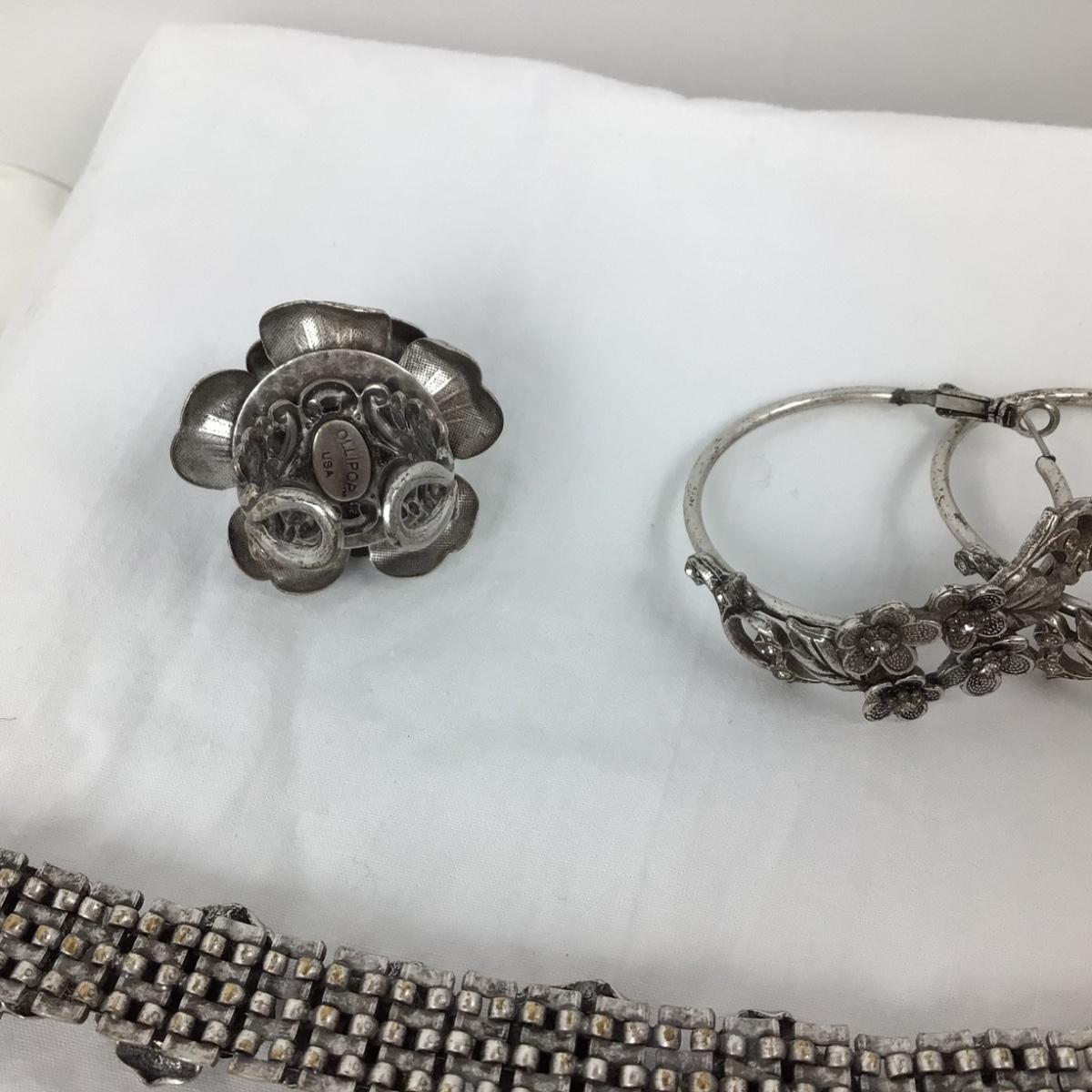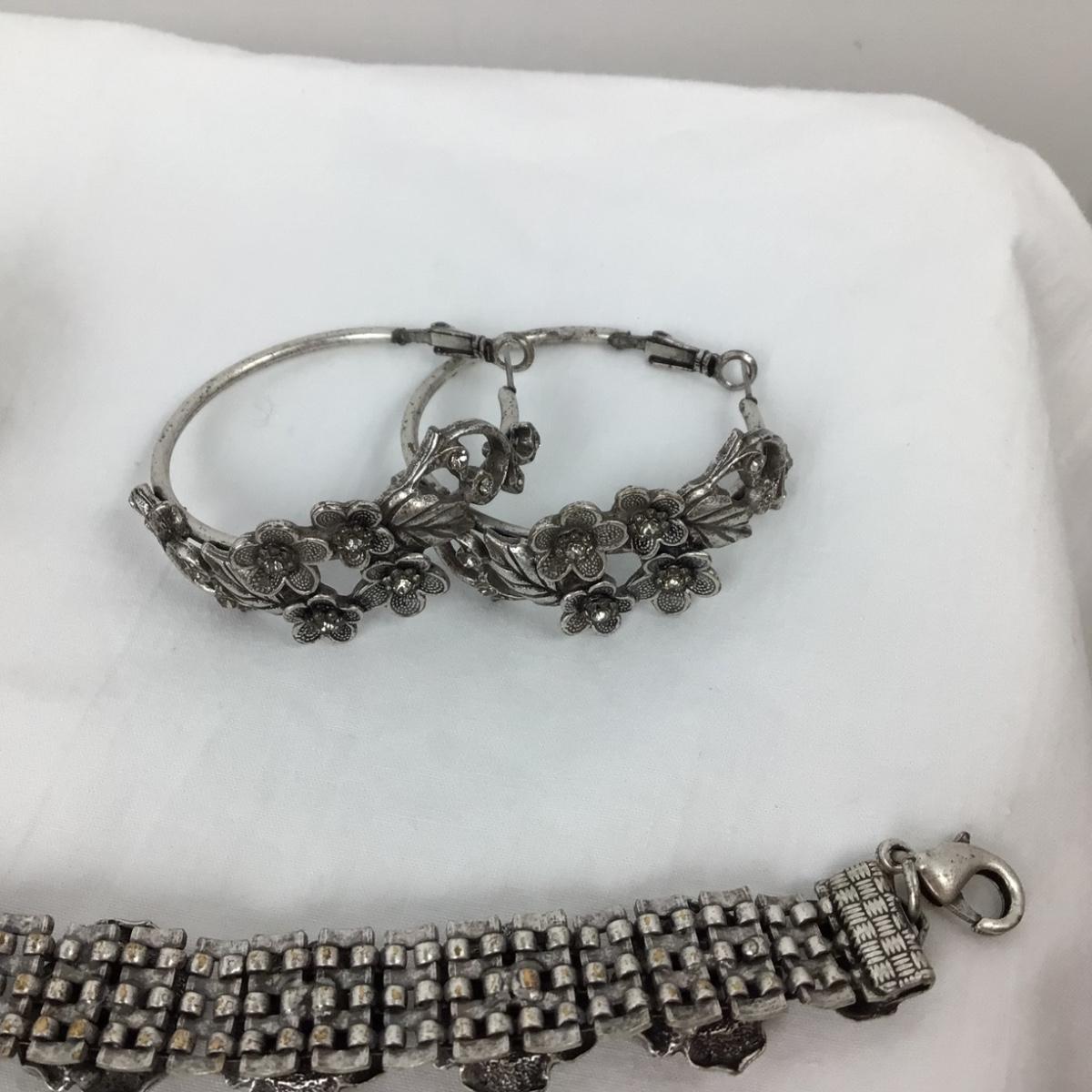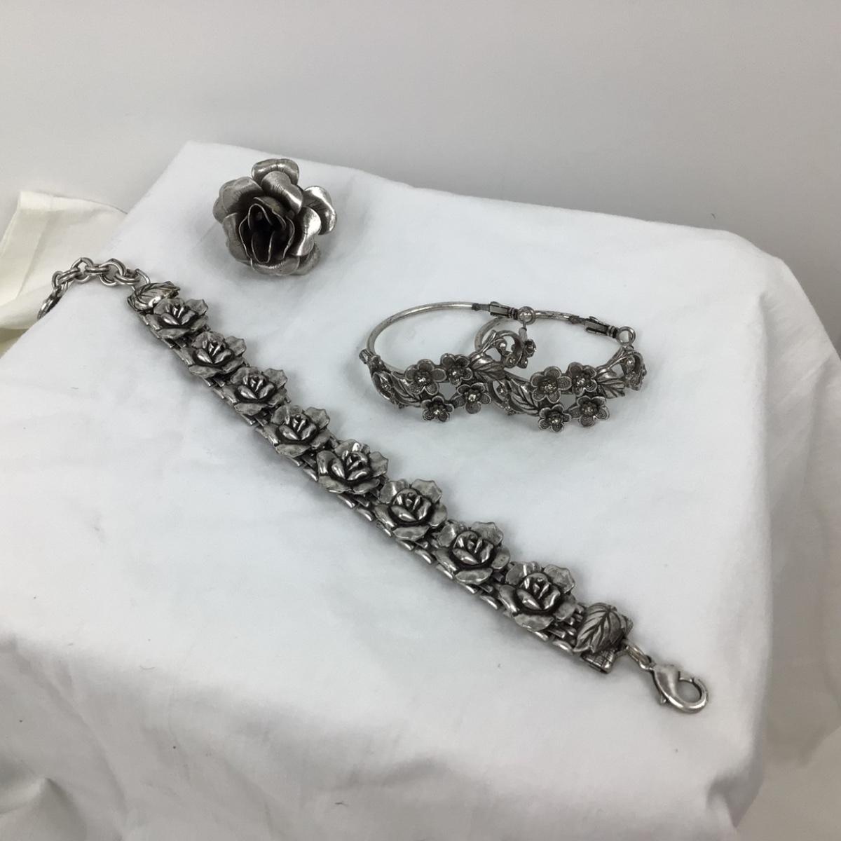 Adjustable ring with Pierced hoop earrings and floral bracelet with adjustable length