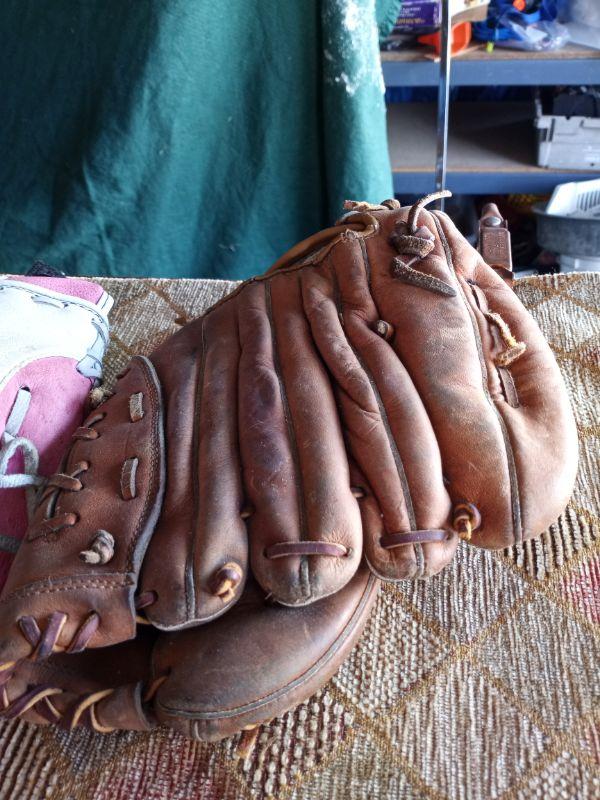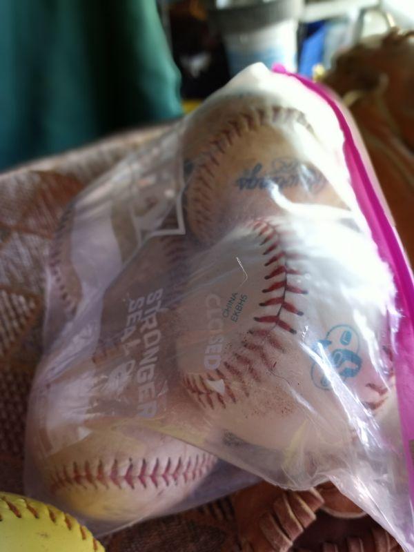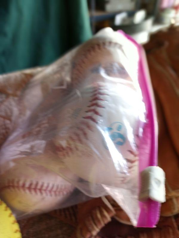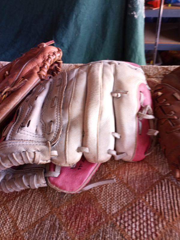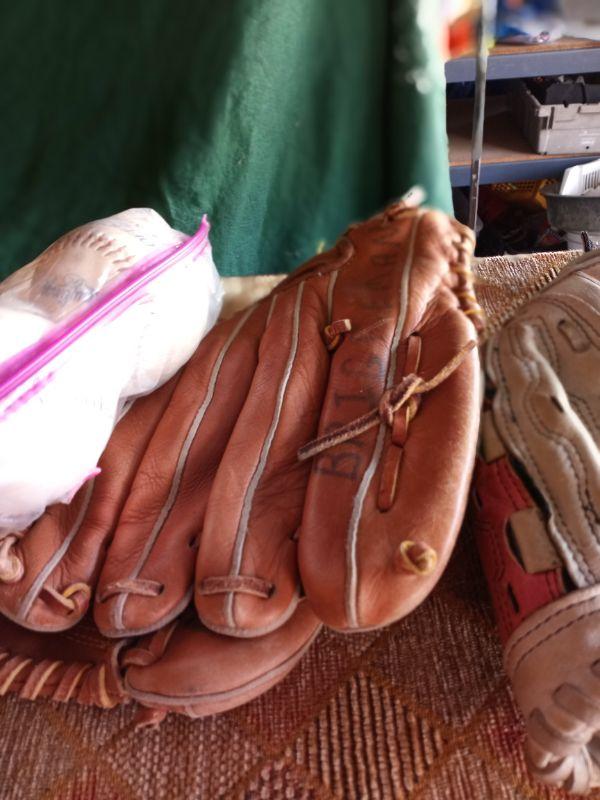 1112 - 3 Baseball Gloves, several little league and softball balls