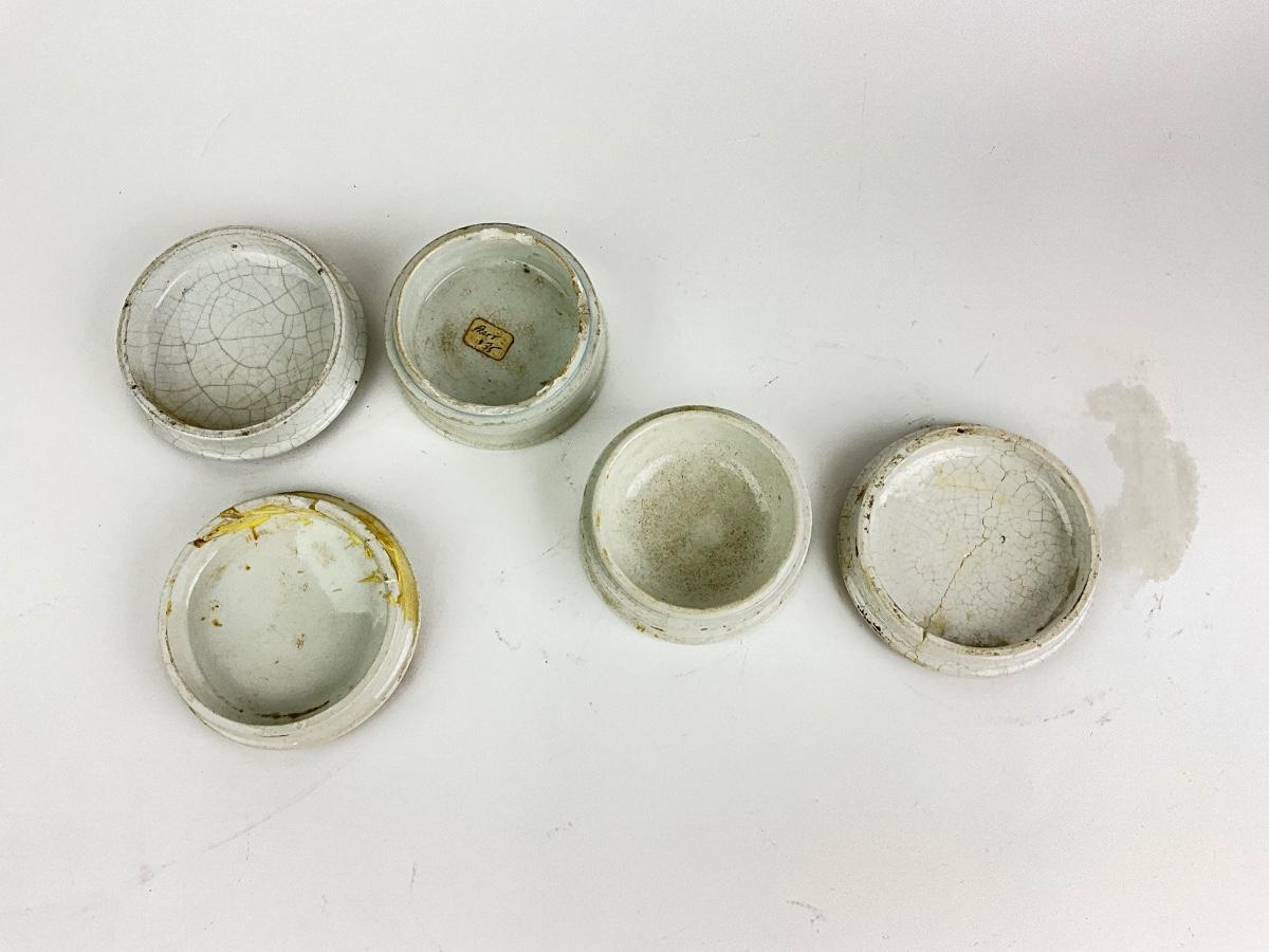 1112 Lot of Early Antique Prattware Jars and Single Lid
