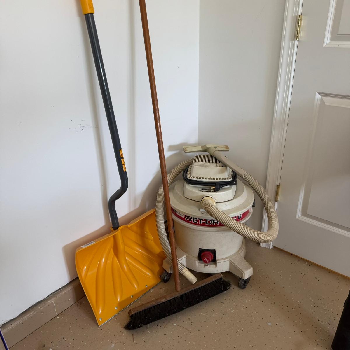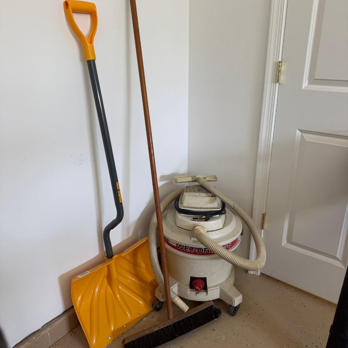 1112 Wet/Dry Vacuum, Snow Shovel & Floor Broom