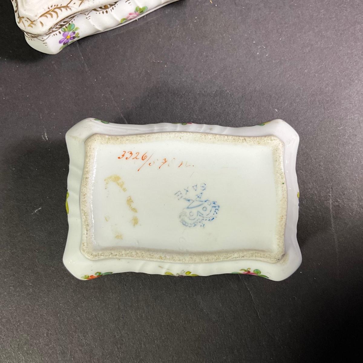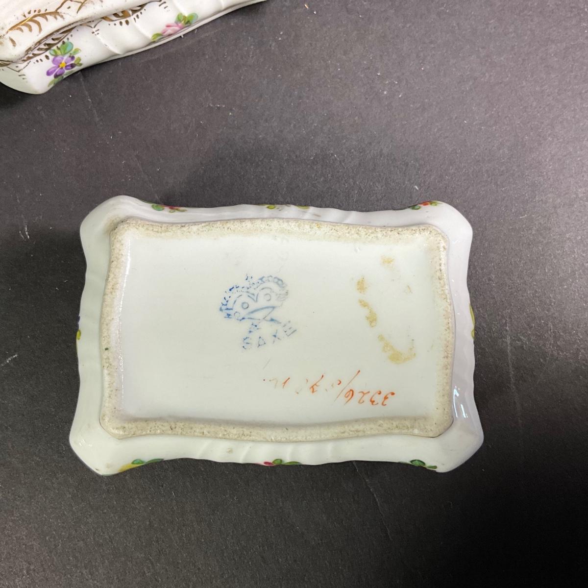 Heart dish with 2 porcelain match boxes measuring 3.5" x 1.5"