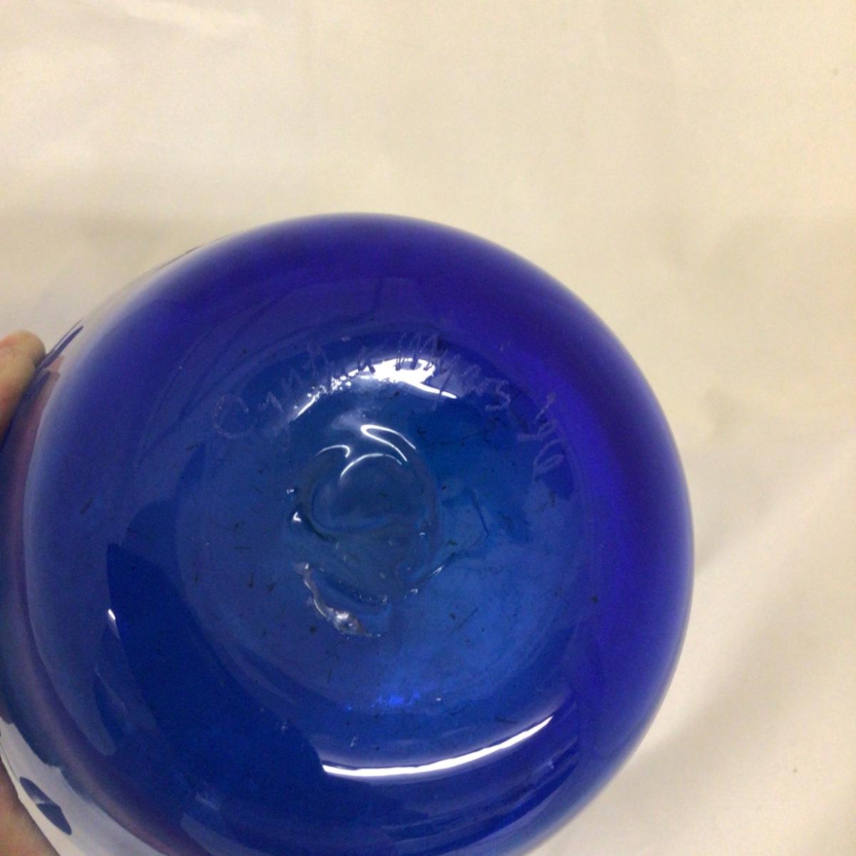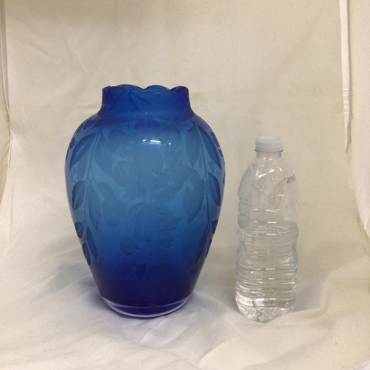 1114 Sand Carved Blue Art Glass Vase by Cynthia Myers