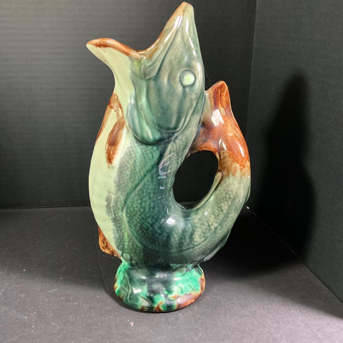 1116 Vintage Majolica Gurgling Fish Pitcher