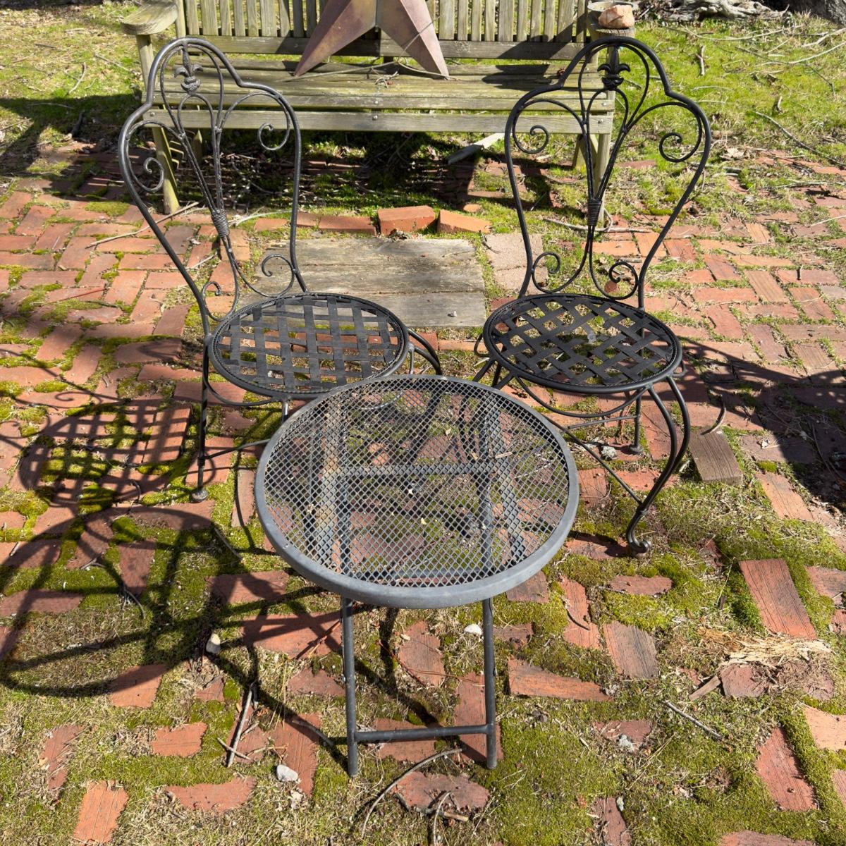 O1116 Vintage Wrought Iron Chairs with Folding Aluminum Table