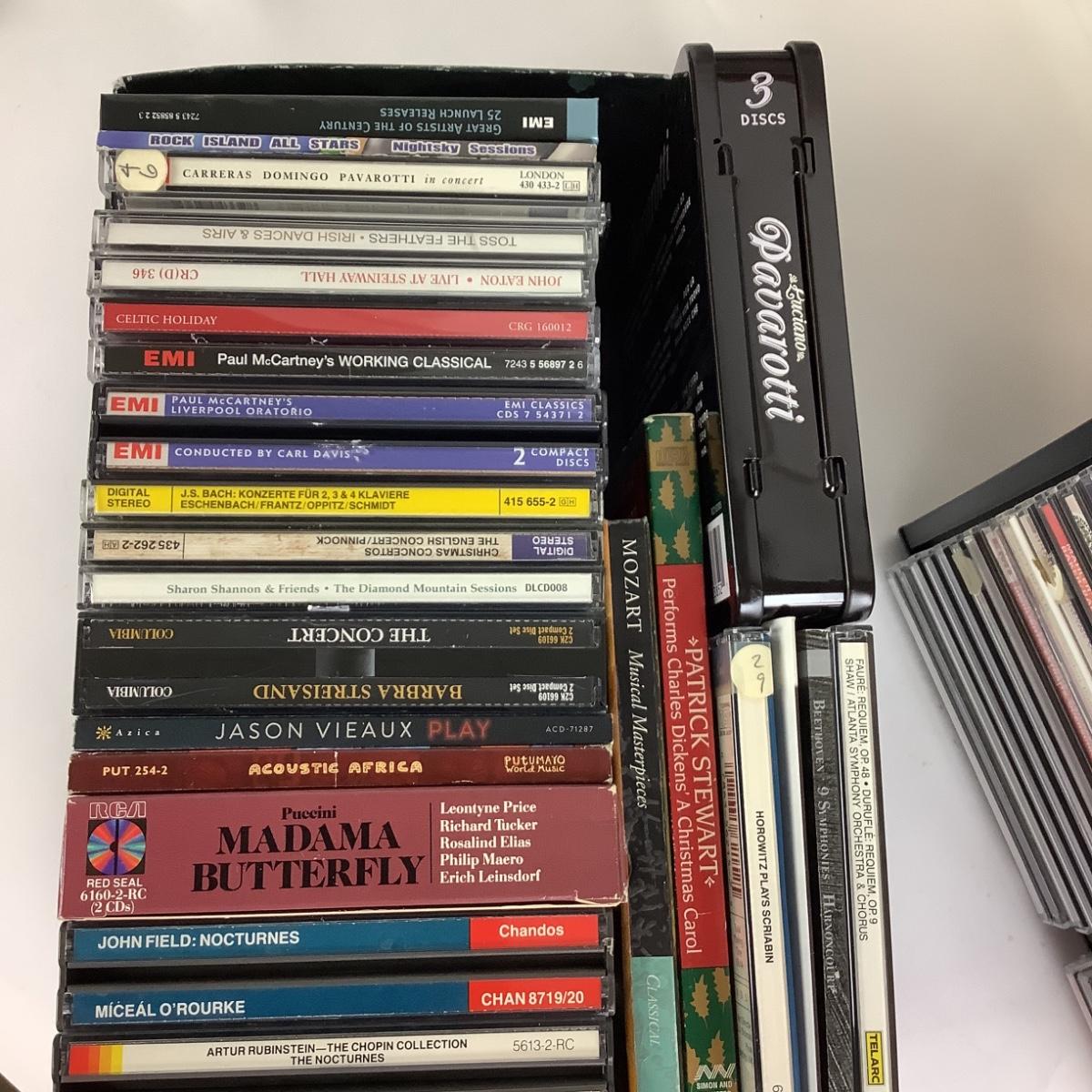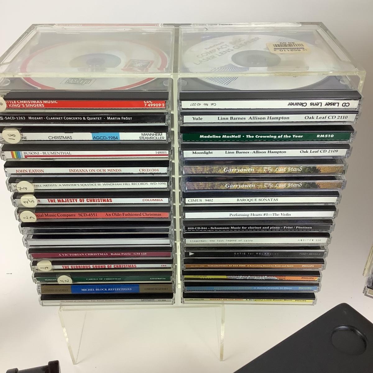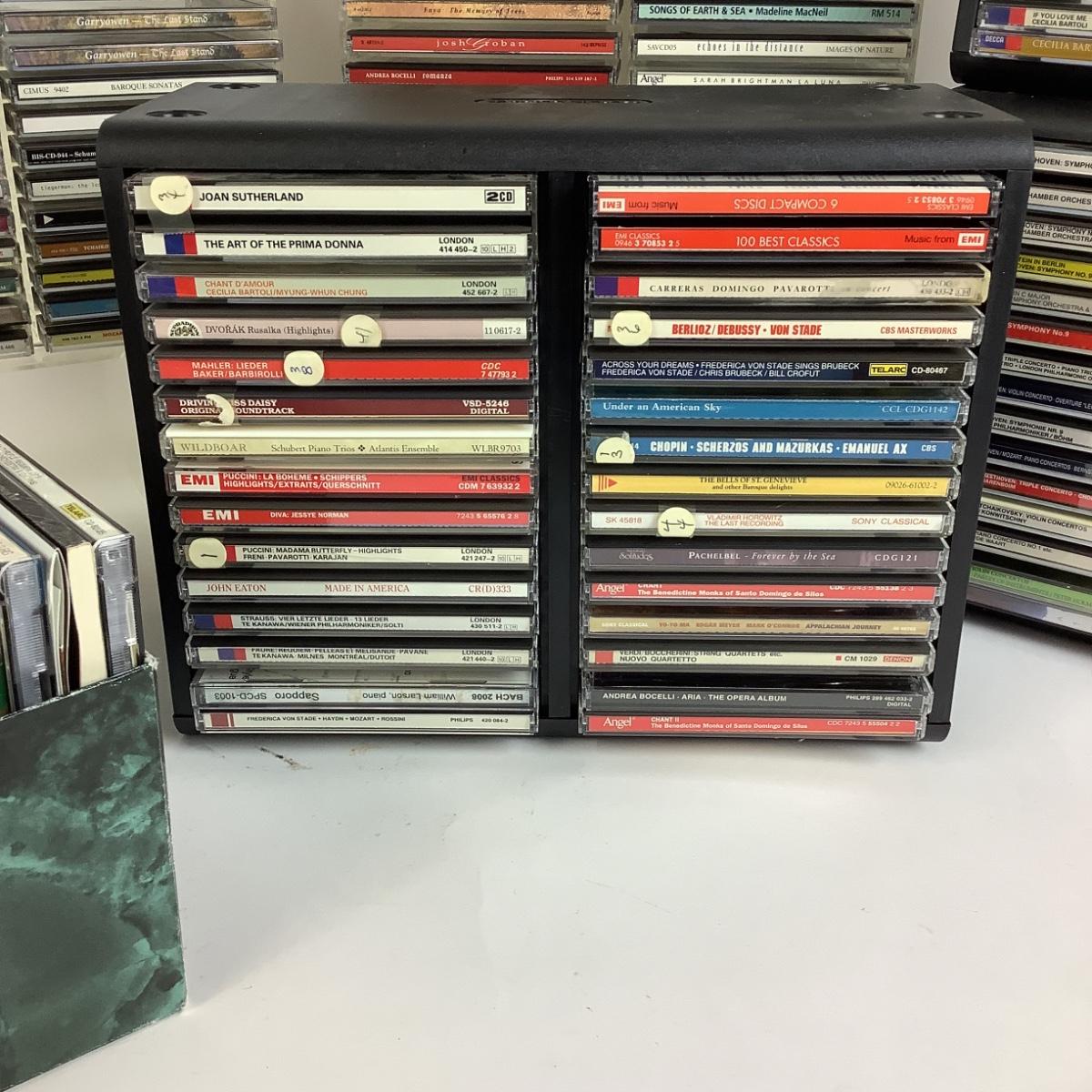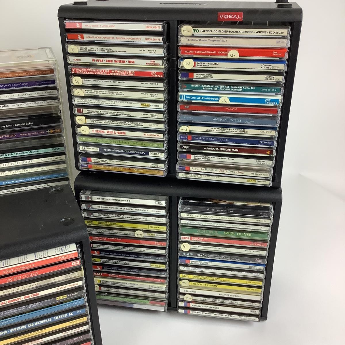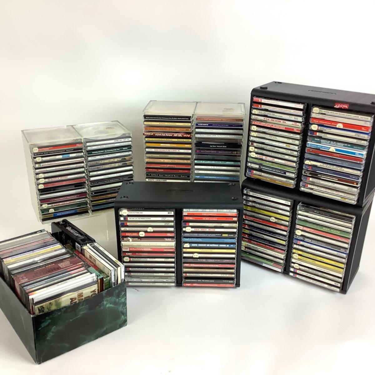 There are approximately 150 music cd's in this lot, most are classical with some holiday as well. There are 2 acrylic cases from The Container Store and 3 "Openstock" Cases.