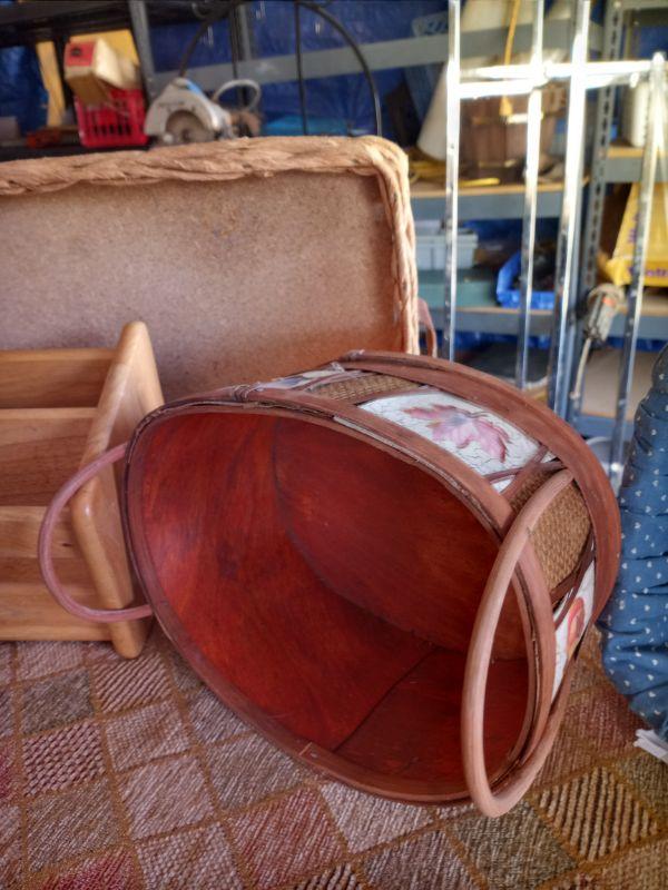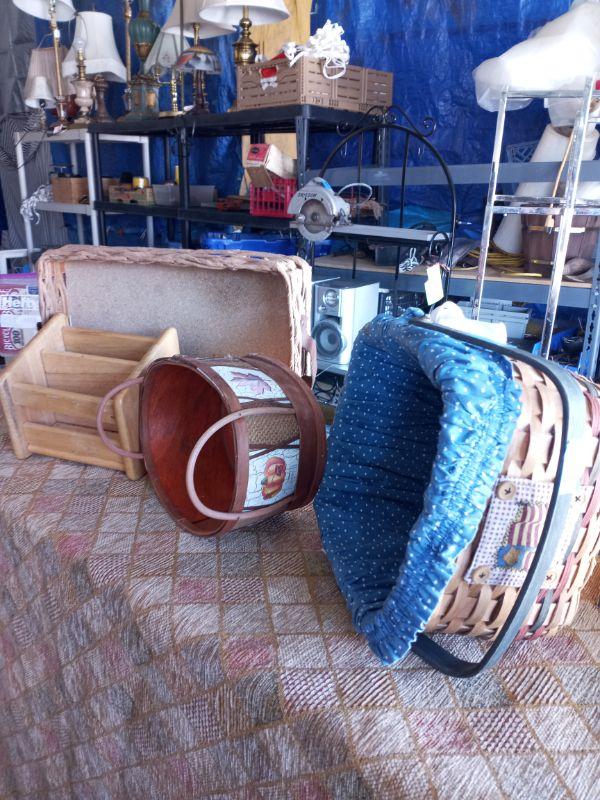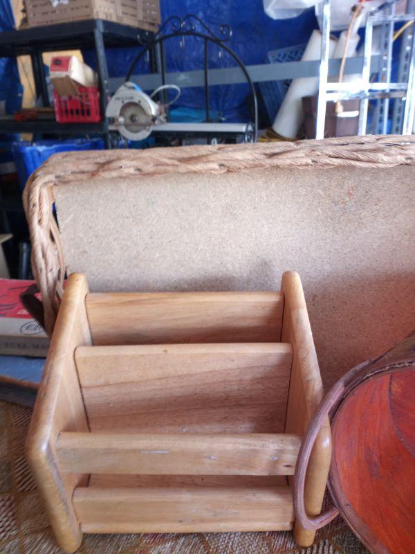 1118 - 2 baskets, mini wood shelf, small server tray