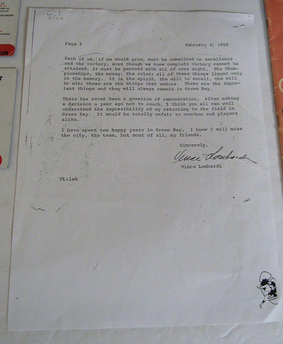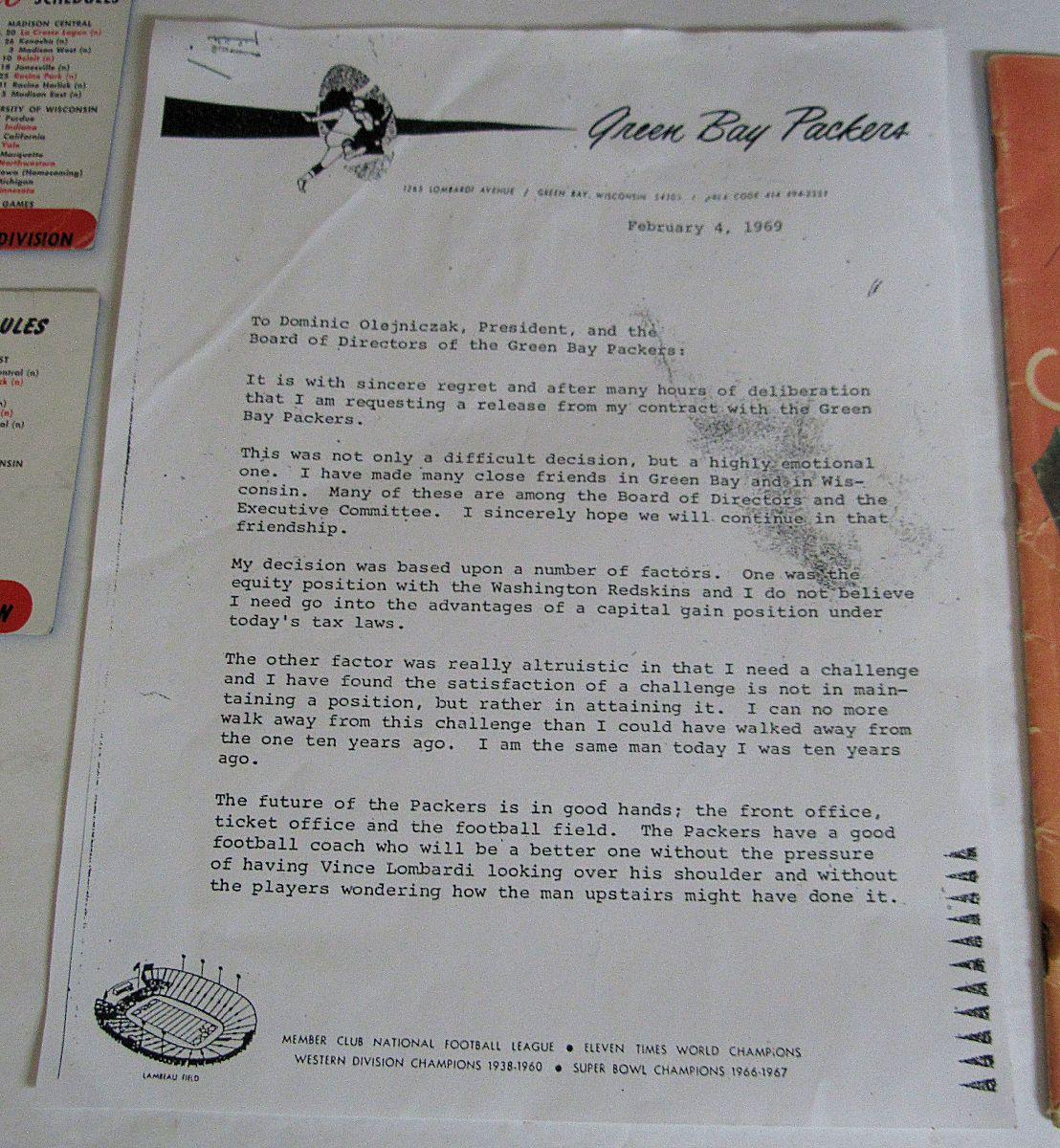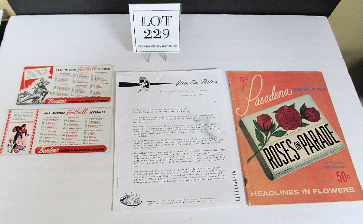 1/1/1965 Pasadena Tournament of Roses, Copy of Vince Lombardi's Stepping Down Notification, More