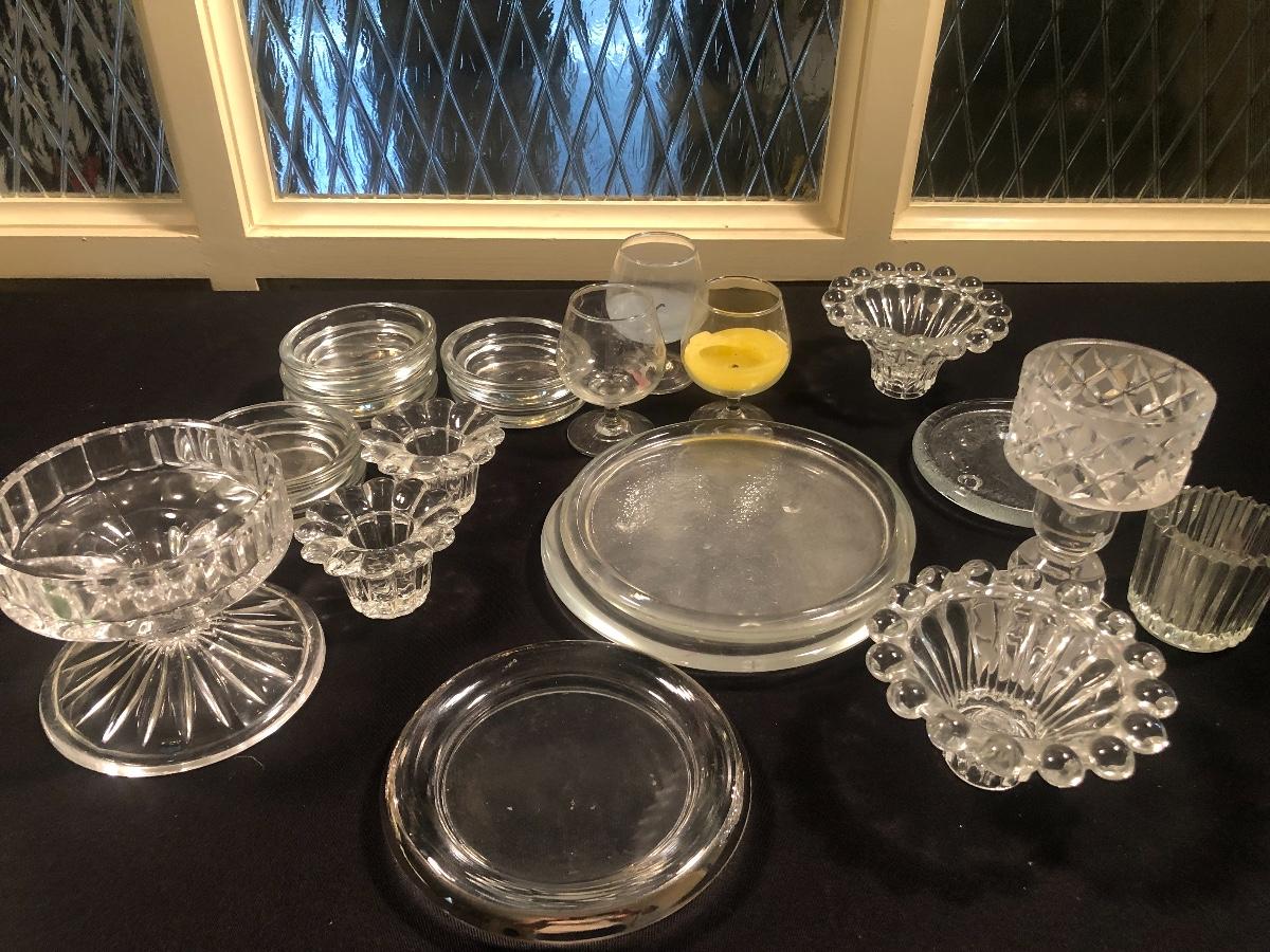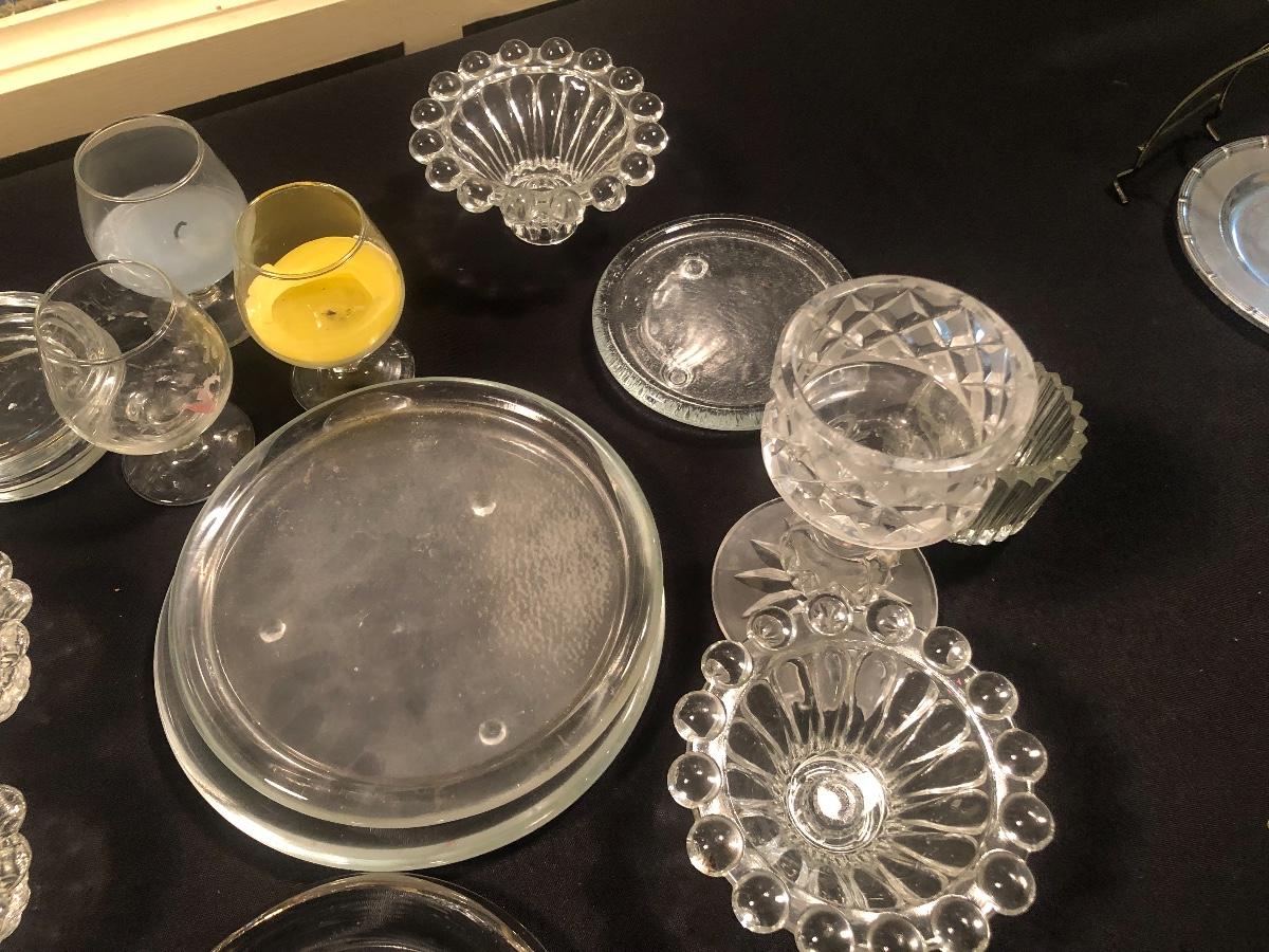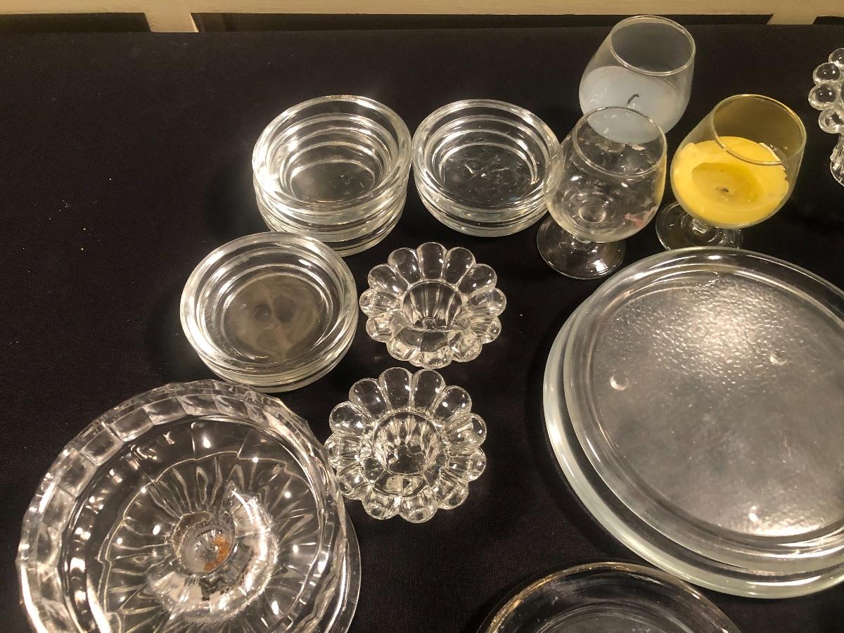 #111-Bundle of various glass candleholders and dishes