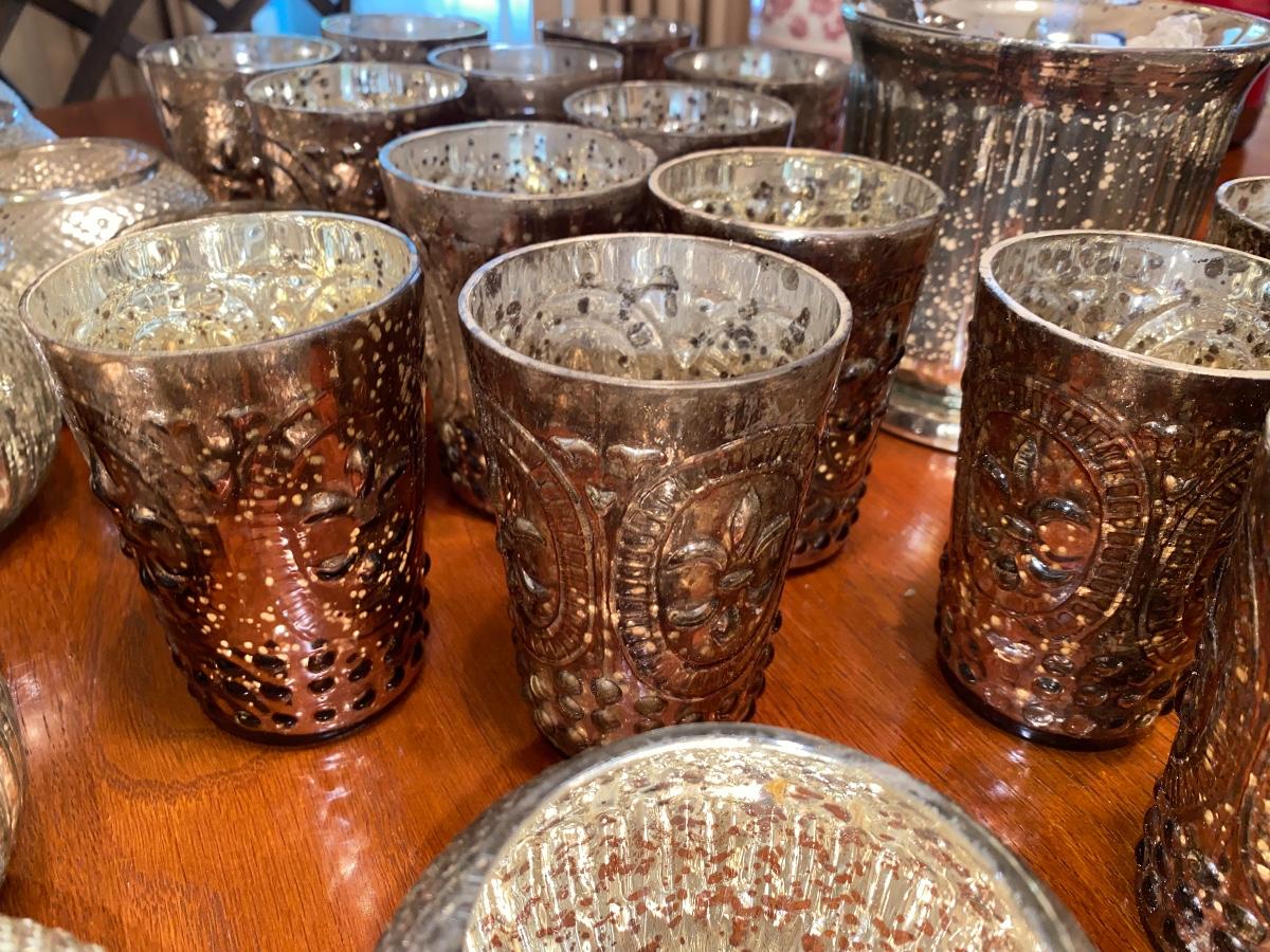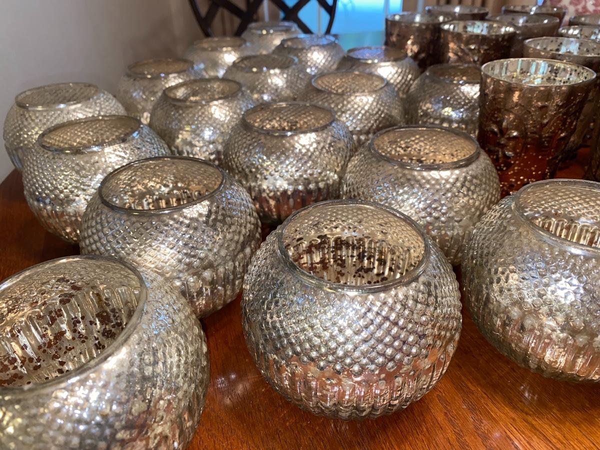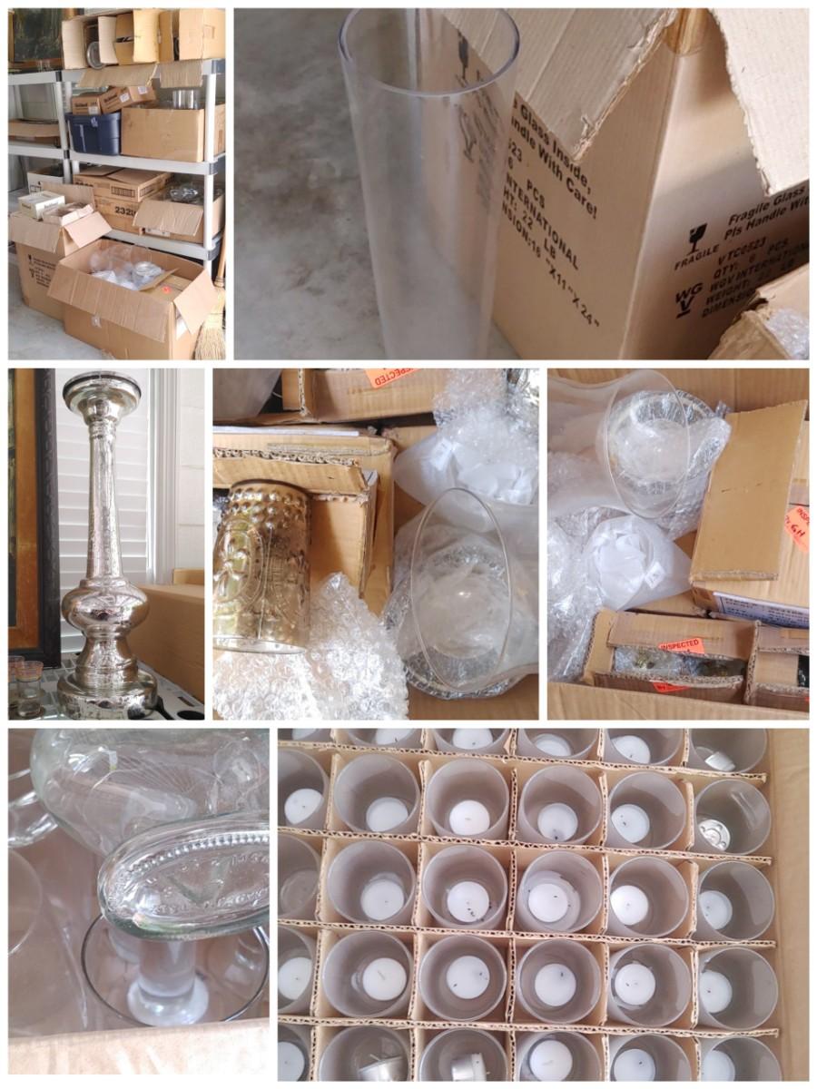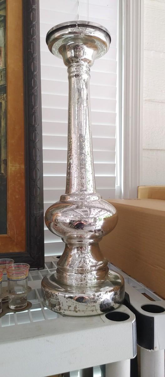 Fantastic lot of new wedding decorations at least 4 Gigantic mercury glass pedestal candle holders & a huge selection of mercury glass candle holders, a case of clear large vases and everything you can imagine ..as far as lighting that you need for a wedding!
