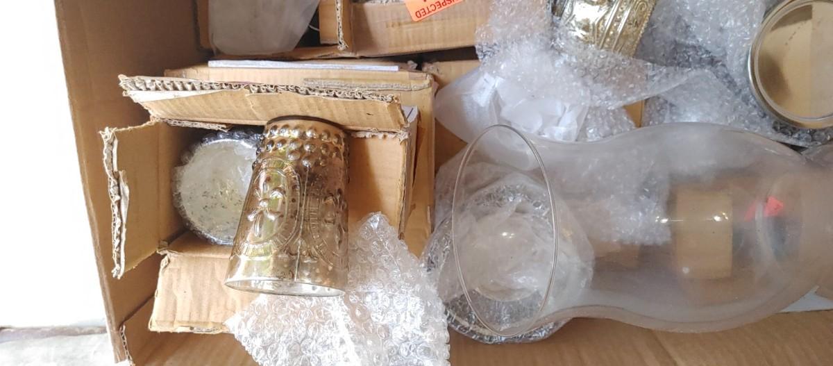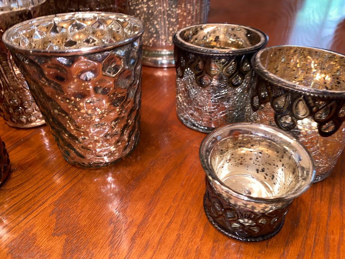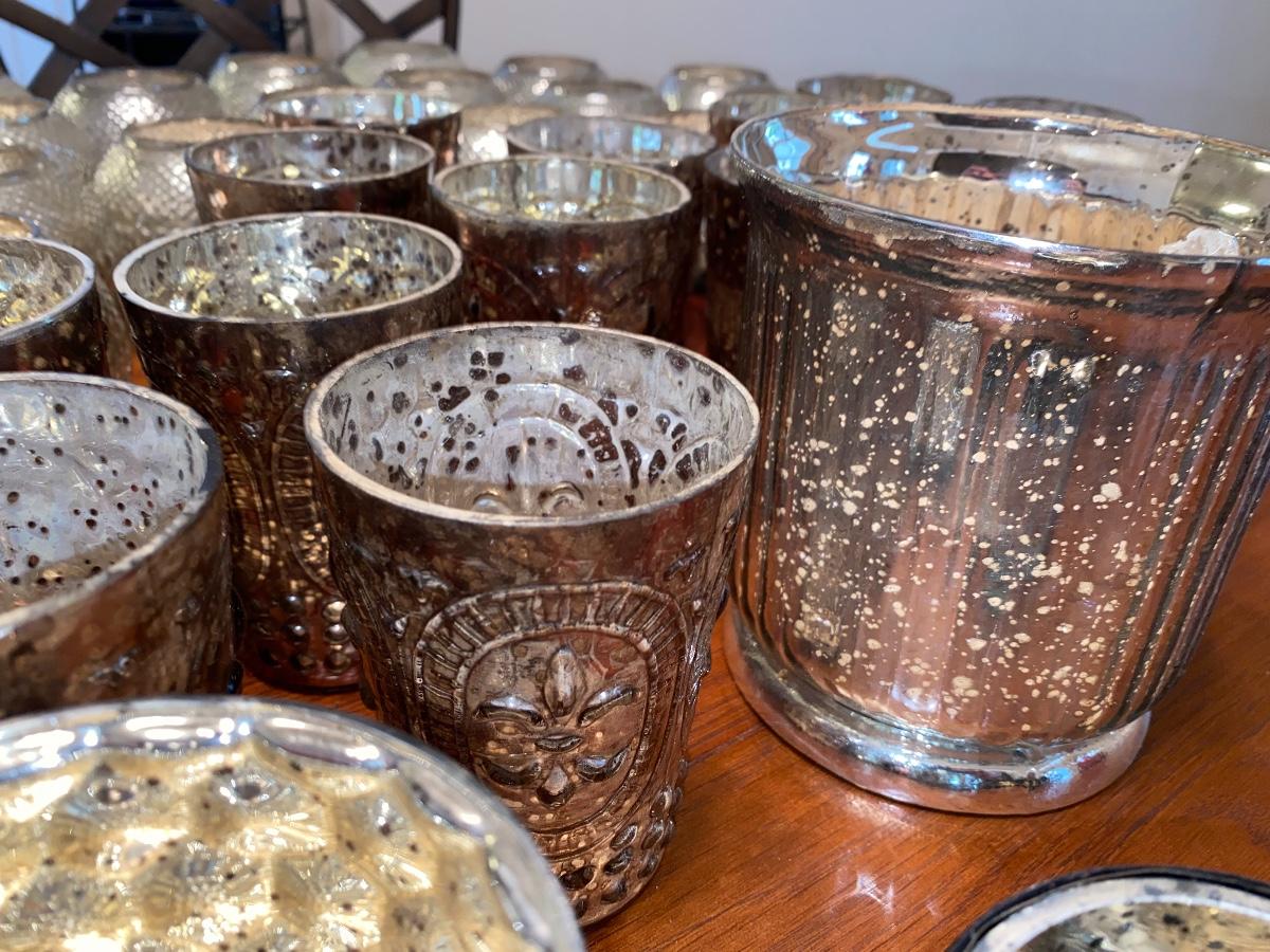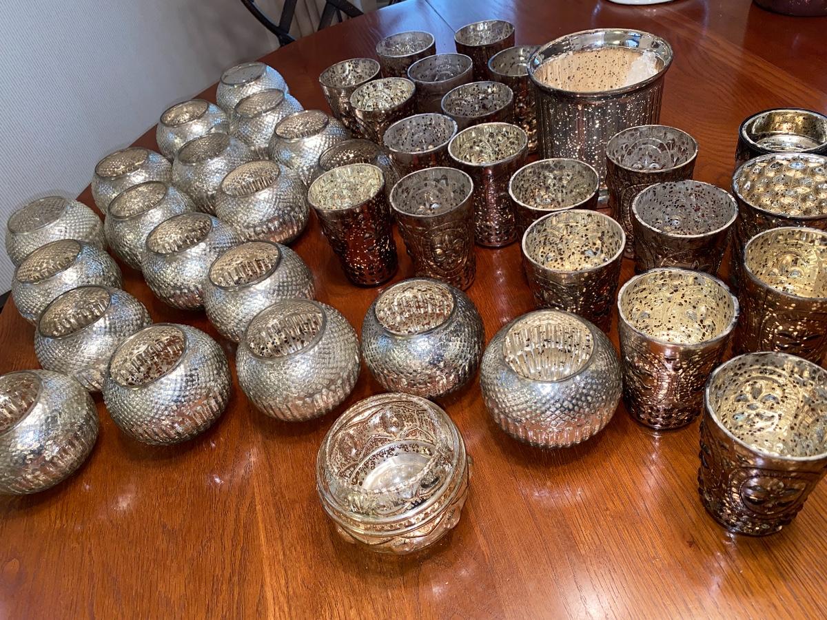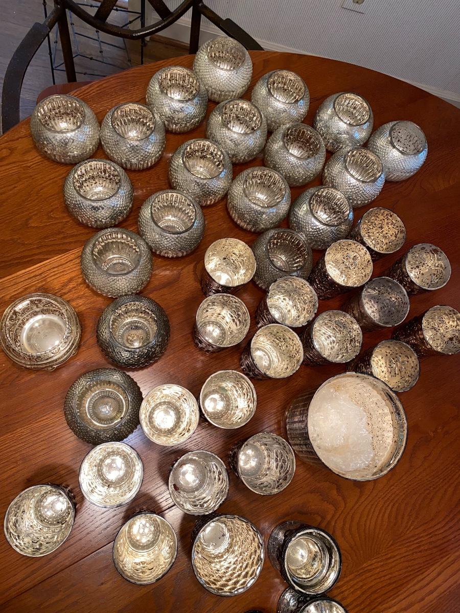 Fantastic lot of new wedding decorations at least 4 Gigantic mercury glass pedestal candle holders & a huge selection of mercury glass candle holders, a case of clear large vases and everything you can imagine ..as far as lighting that you need for a wedding!