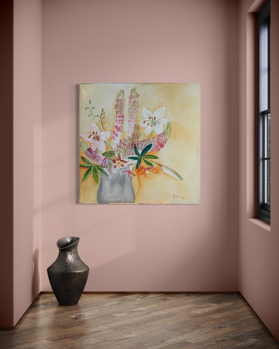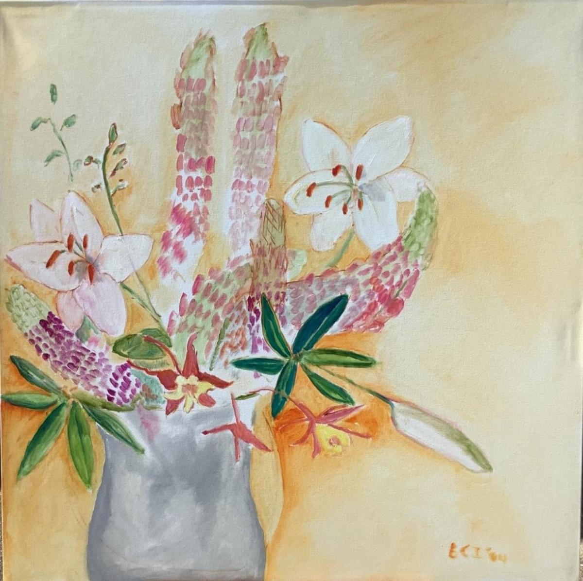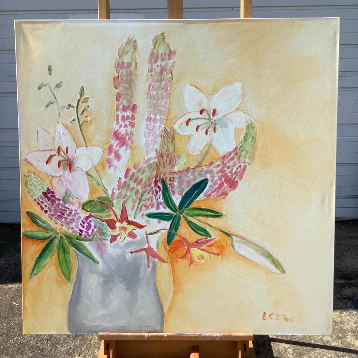 112 Lillies & Lupiness Bouquet Oil on Canvas by Ellen Into
