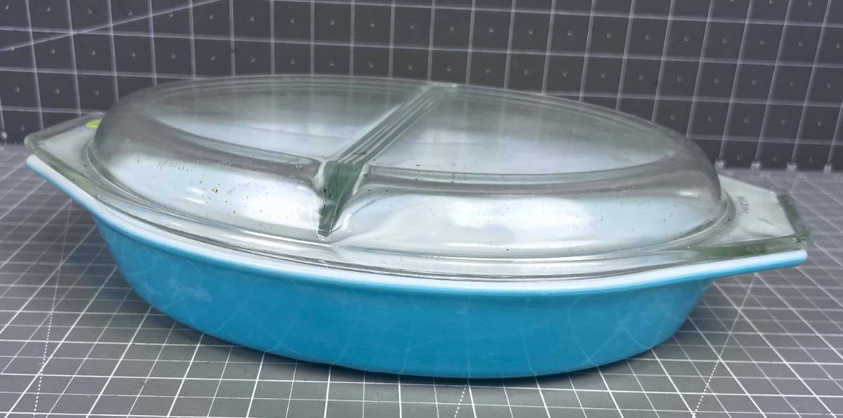 1-1/2 Turquoise Divided Dish with LID - PYREX