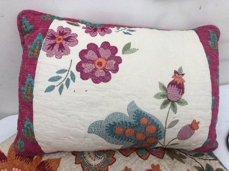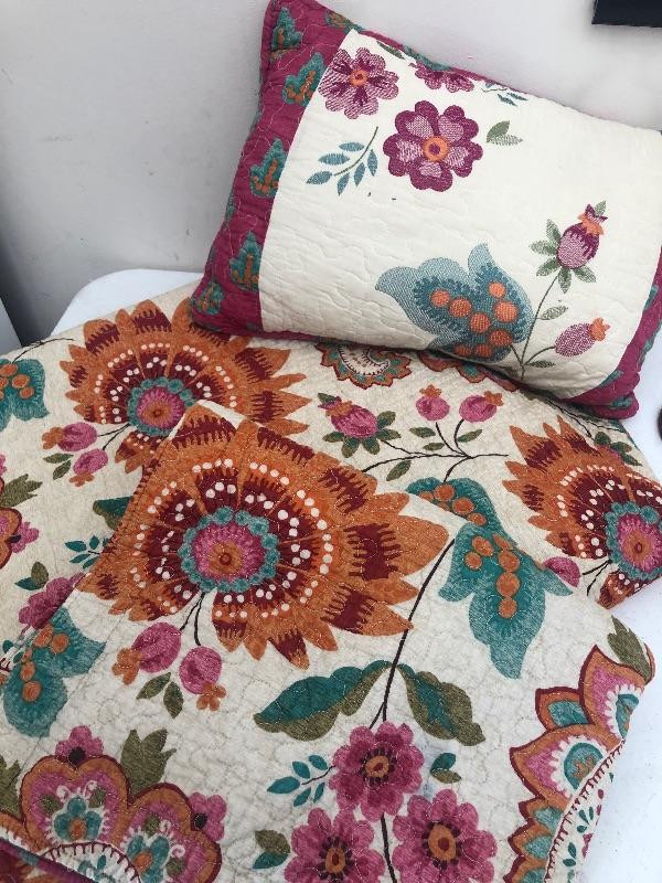 Adorable twin quilt set with quilt, sham and throw pillow - great condition. This is an ONSITE Auction all items will need to be picked up on location. Please see auction description for pick up procedures