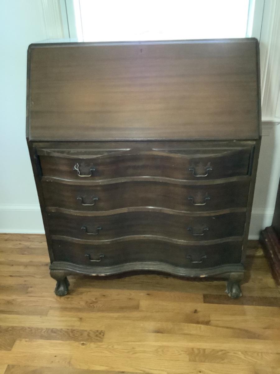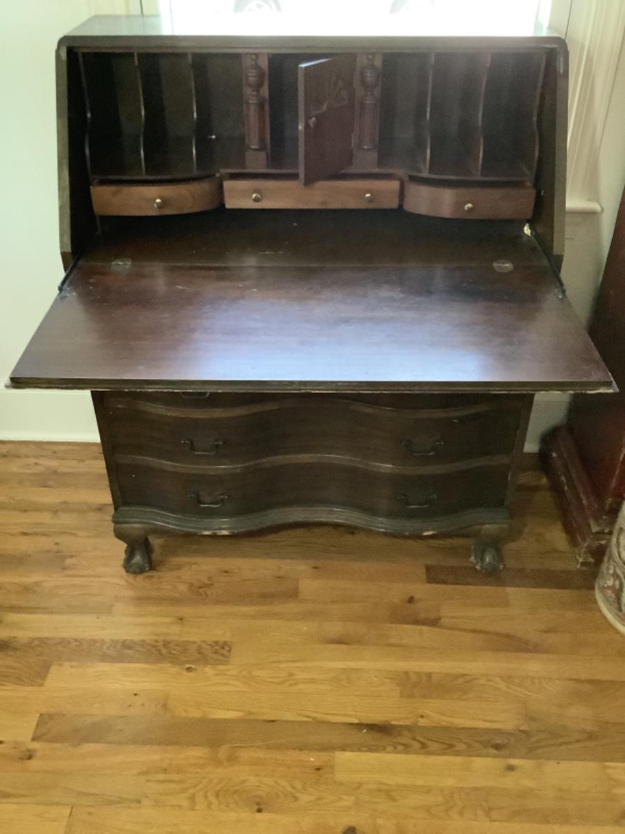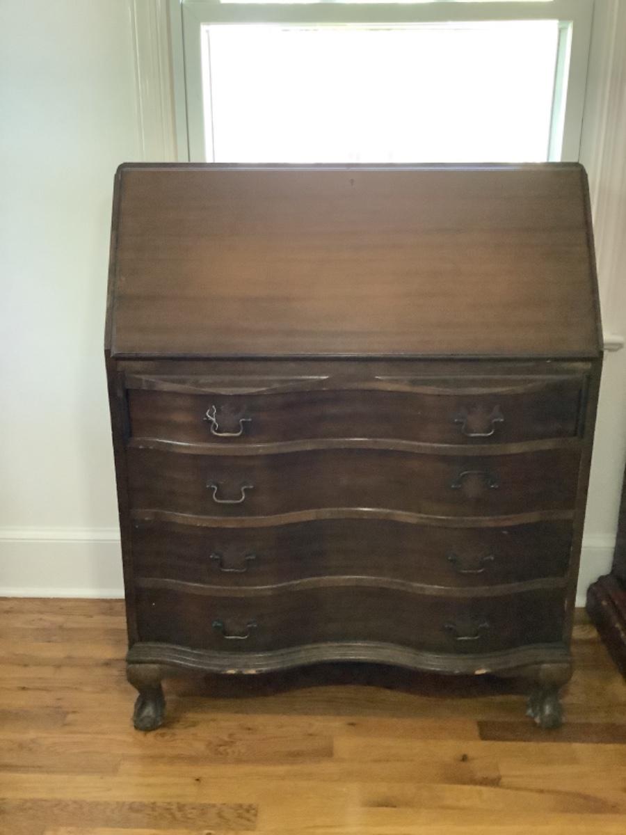112 Vintage Mahogany Serpentine Slant Top Ball and Claw Feet Desk