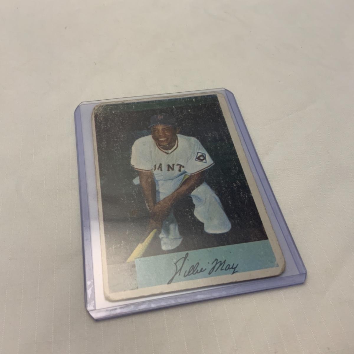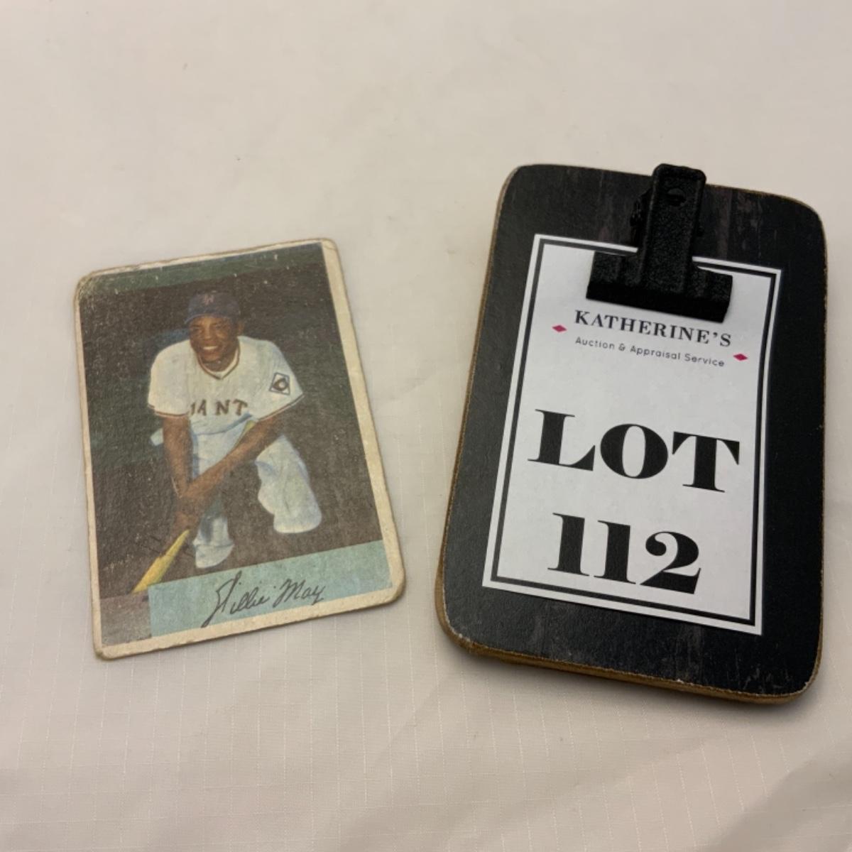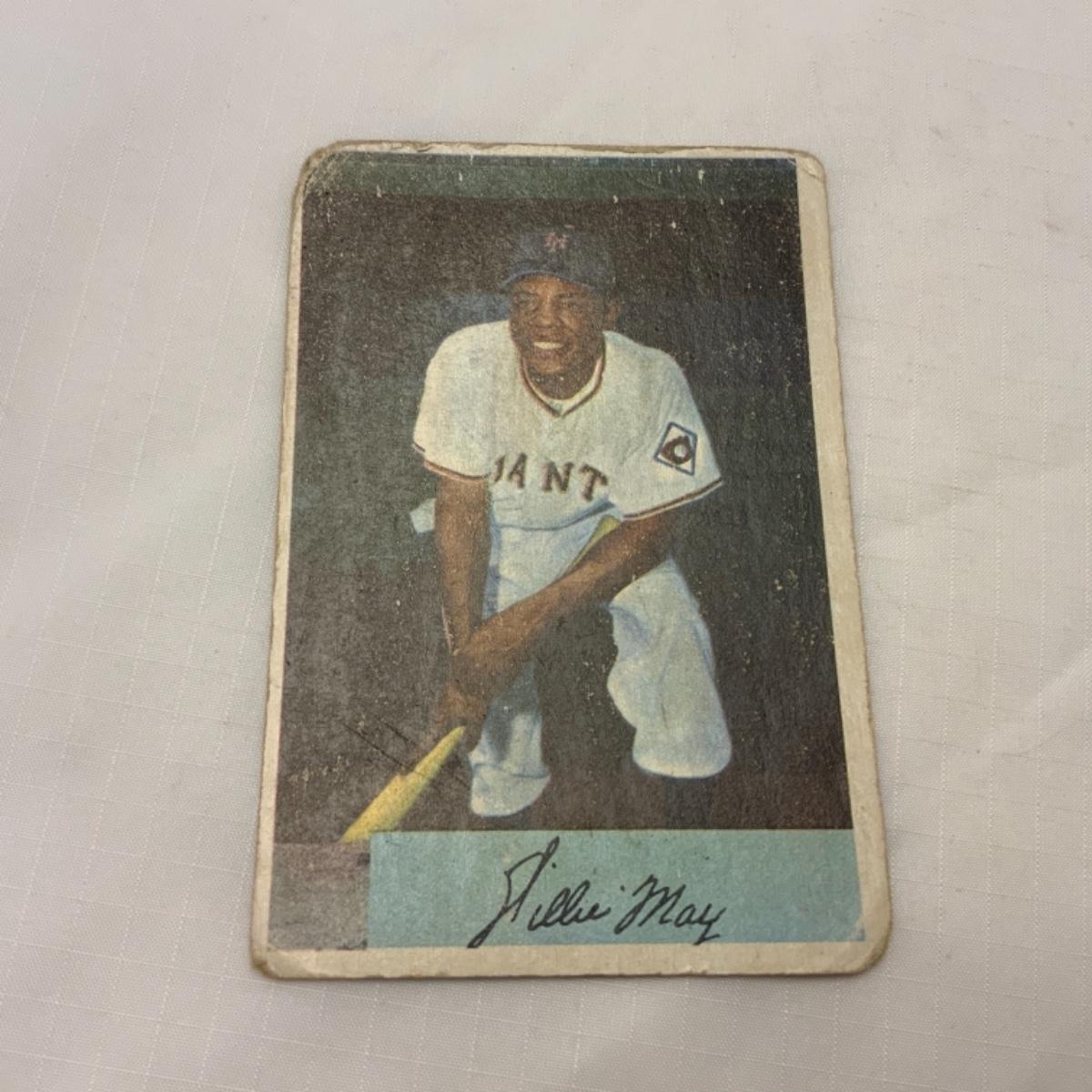 Although in poor condition this Willie Mays Bowman Baseball Card still packs a punch. The card is #89 in the 1954 series featuring Mays, a Hall of Fame Player from the New York Giants. Card comes from the original owner. Please see photos for details and condition. ::: Shipping is available on this lot. If you require shipping you must let us know at the close of the auction. We will coordinate with you after the item has been won. Shipping fees will include insurance up to or exceeding the value of all items being mailed. If you have any questions regarding this lot please contact the auctioneer either via this website, by direct email or by phone. PICK UP TIMES and other important information can be found in the TERMS and DESCRIPTION of the auction. Please take a look for pertinent information. Thanks!