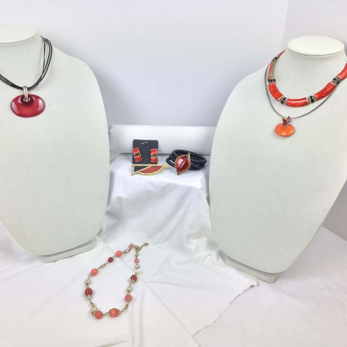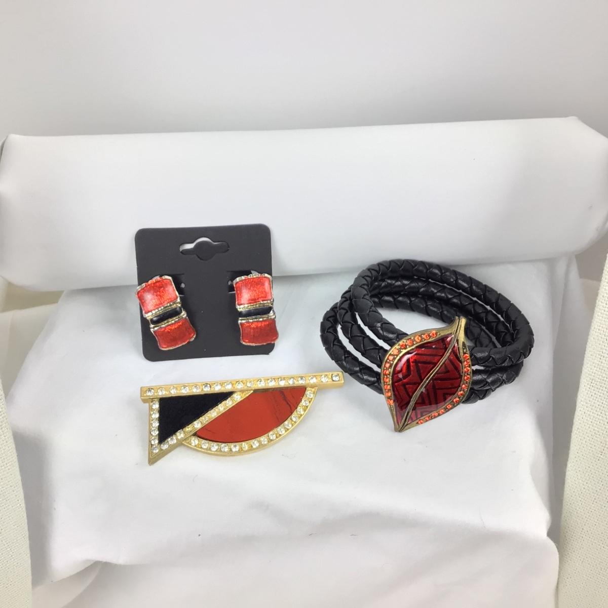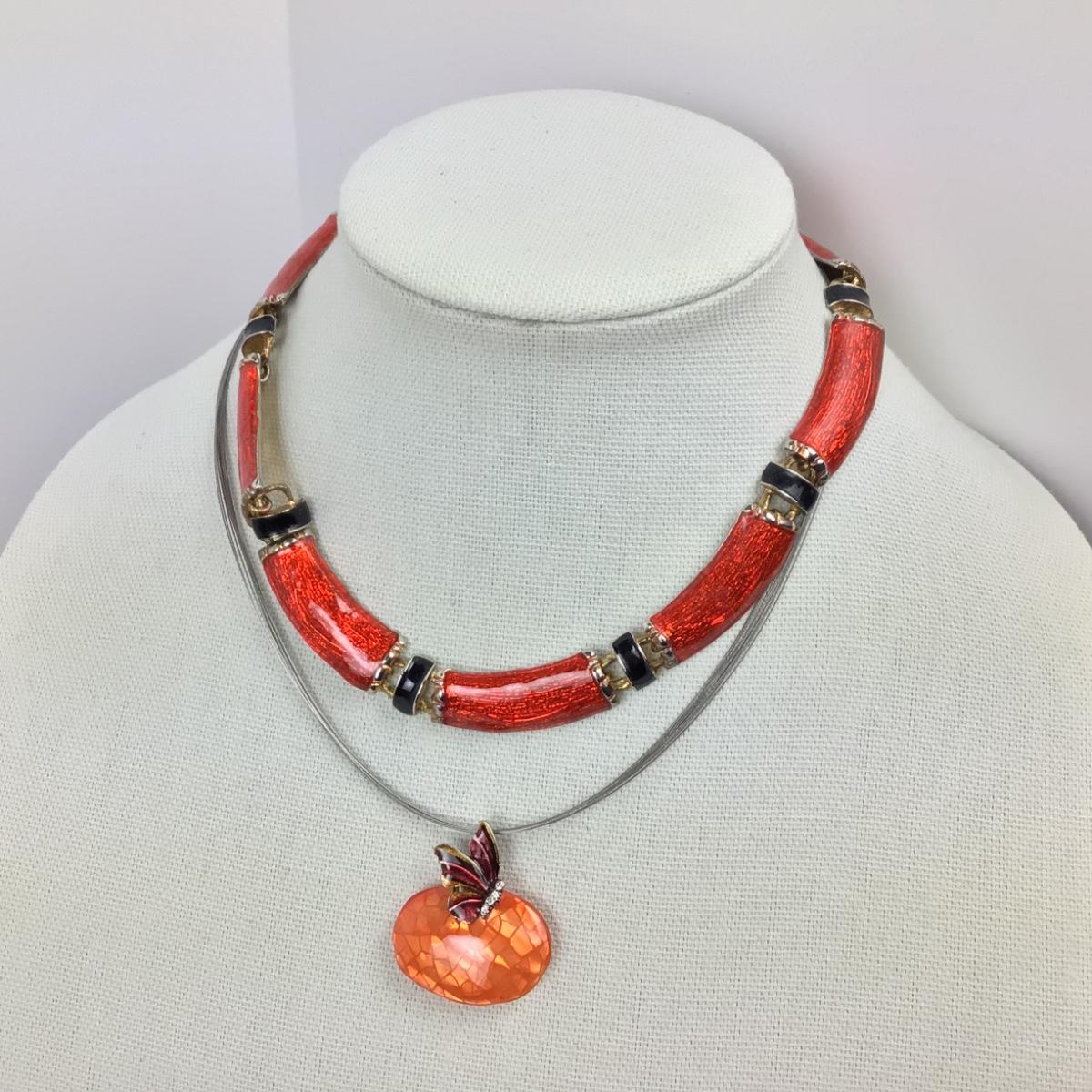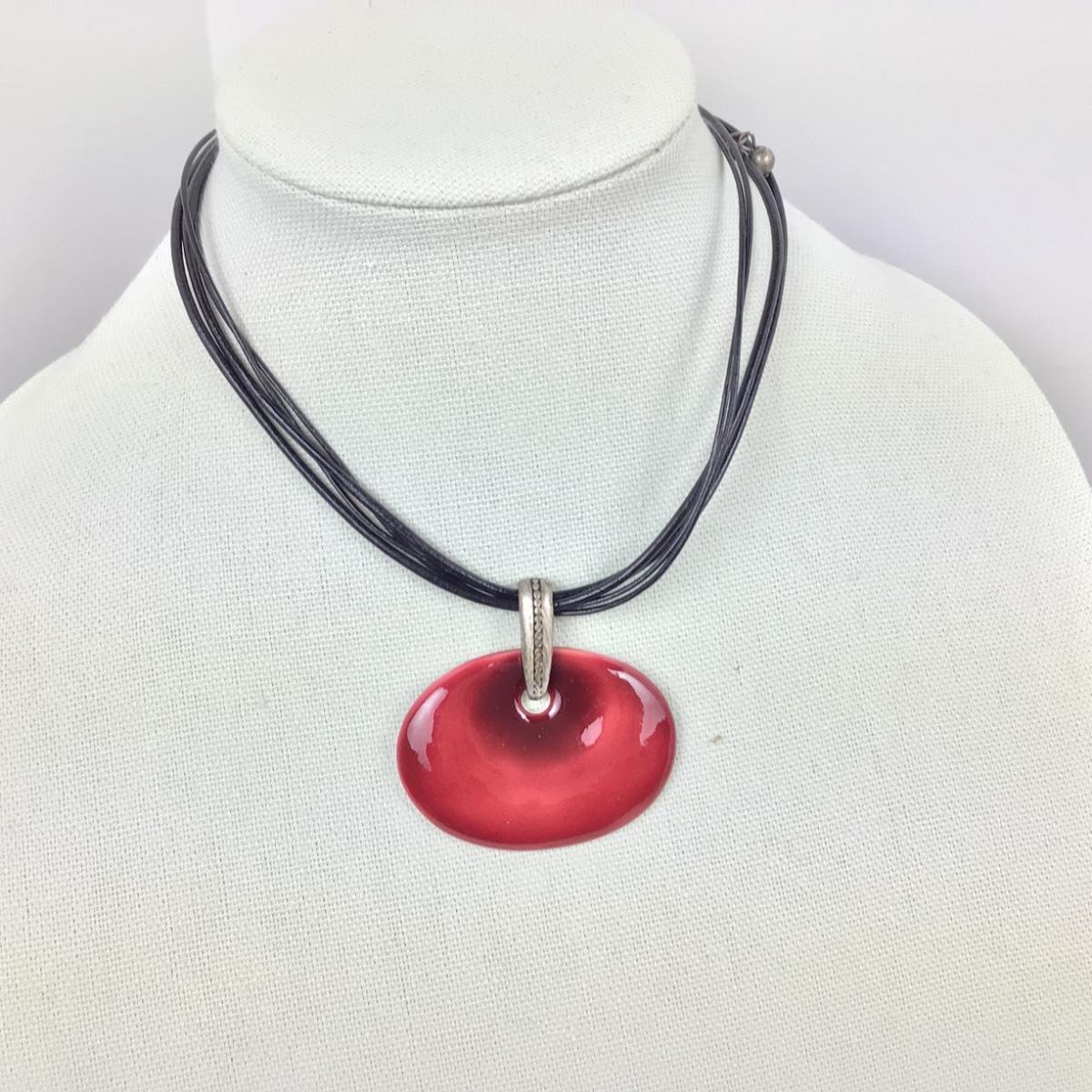 Leather and enamel necklaces with leather enamel bracelet with enameled necklace and earring set , Yamada Tokyo Booch