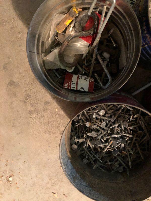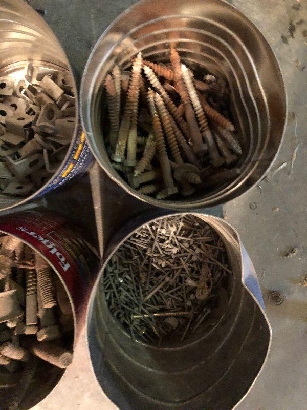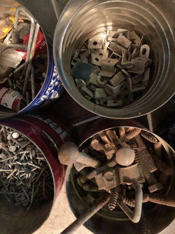 #1123 G 6 Coffee Cans of Nuts and Bolts,  Parts & Pieces.