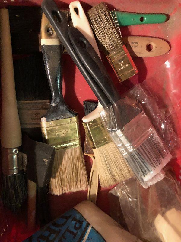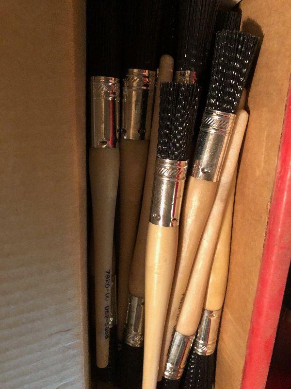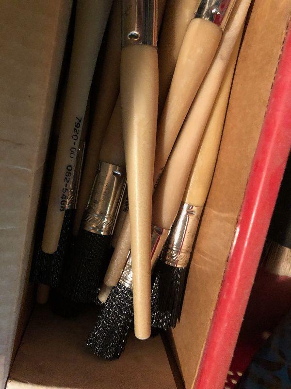 #1124 G Tub Full of Paintbrushes and parts cleaner bushes