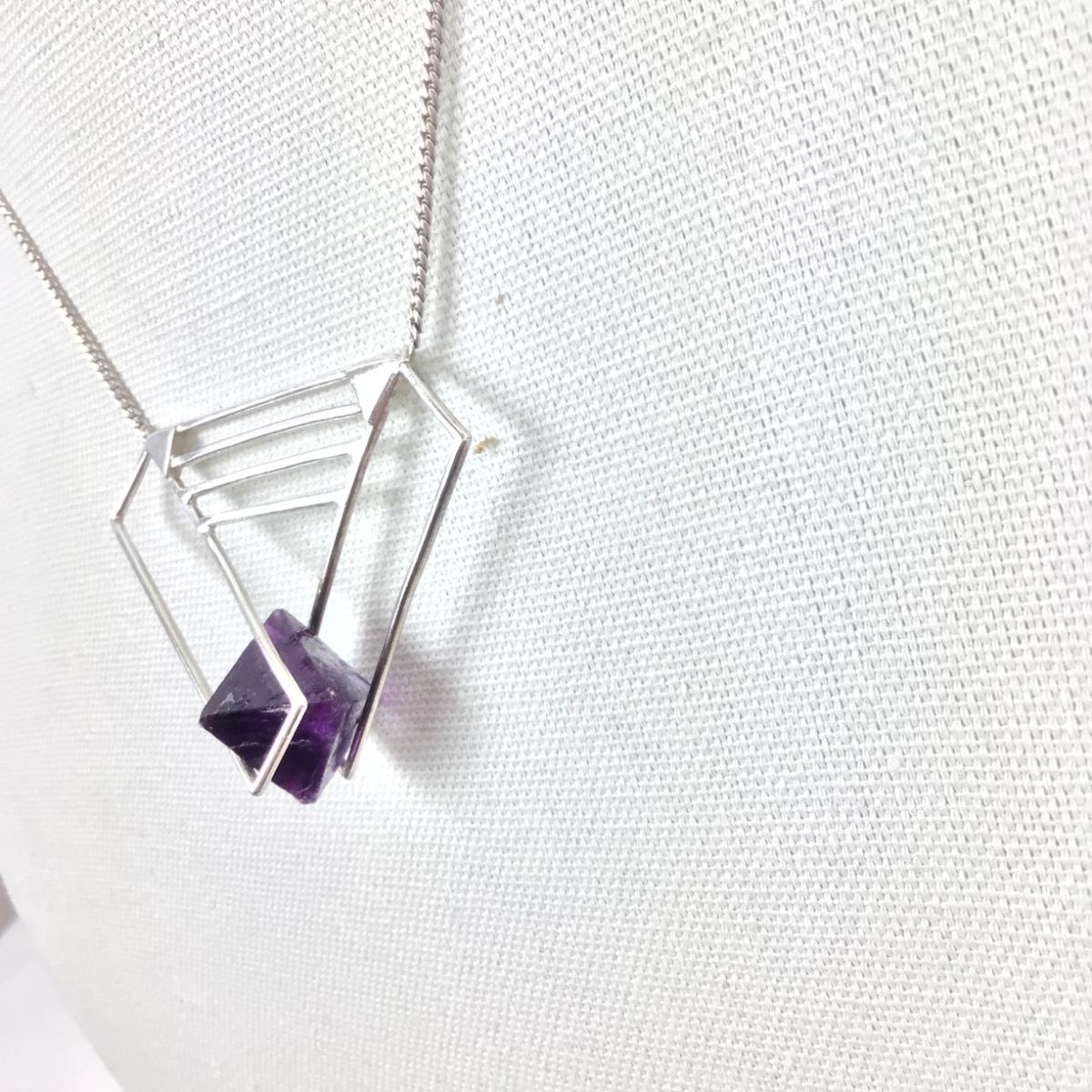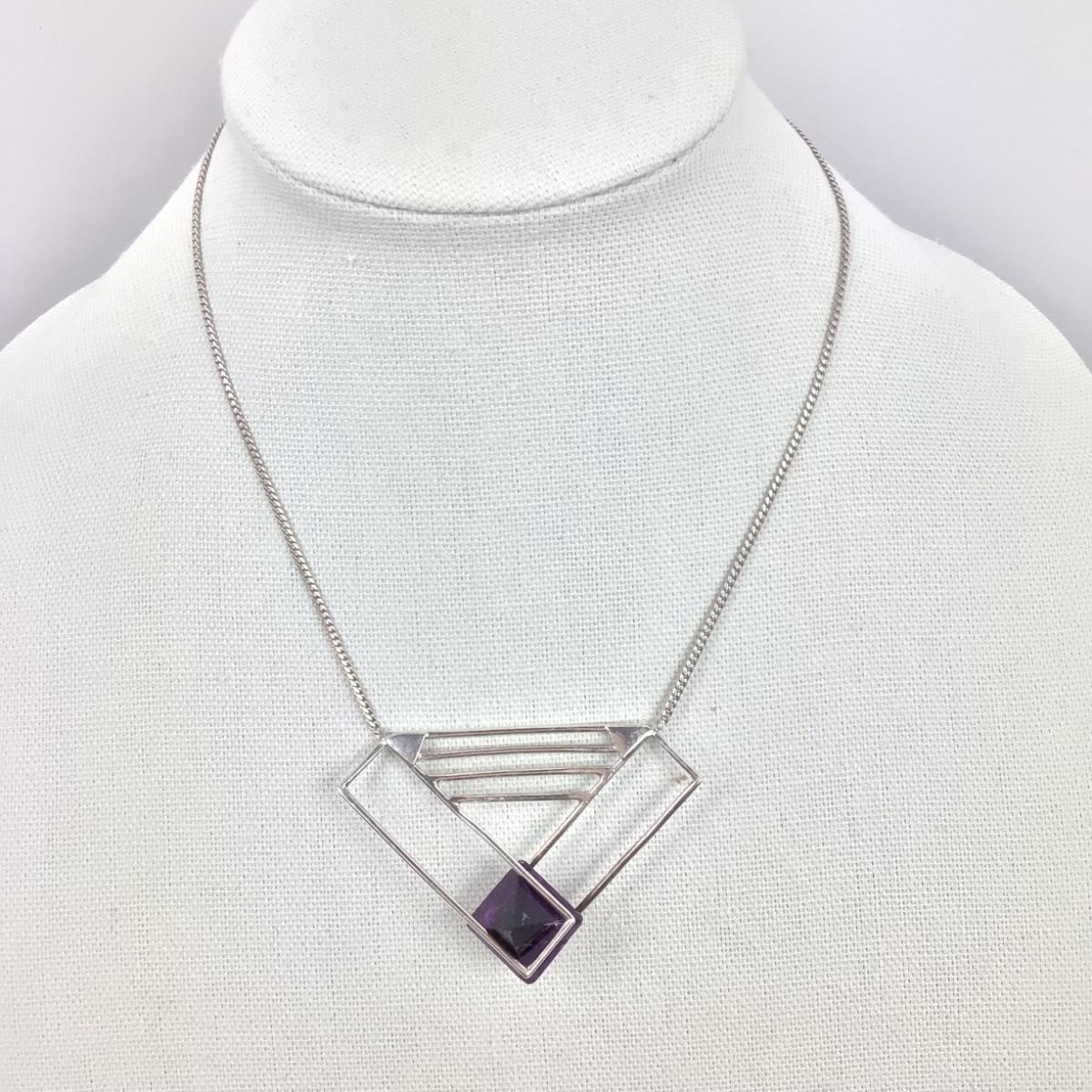 1126 Vintage Sterling Silver Artisan Made Purple Abstract Necklace