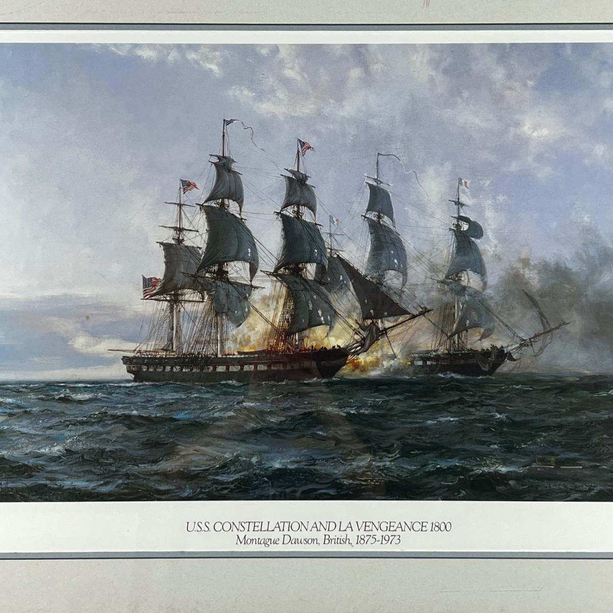 1128 Vintage Nautical Print of U.S.S. Constellation versus La Vengeance by Montague Dawson
