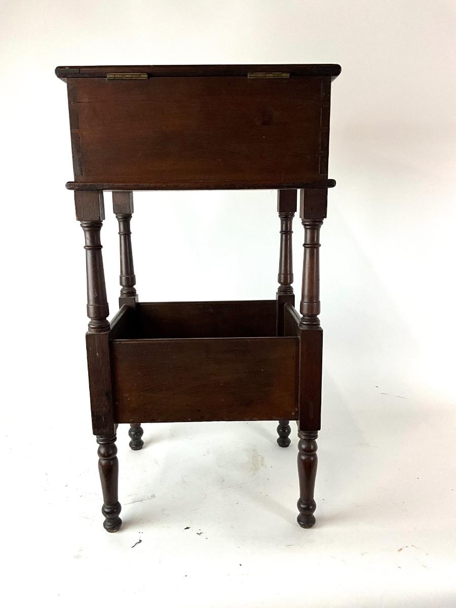 Antique Mahogany Sewing table with dovetail joint, and hinged top