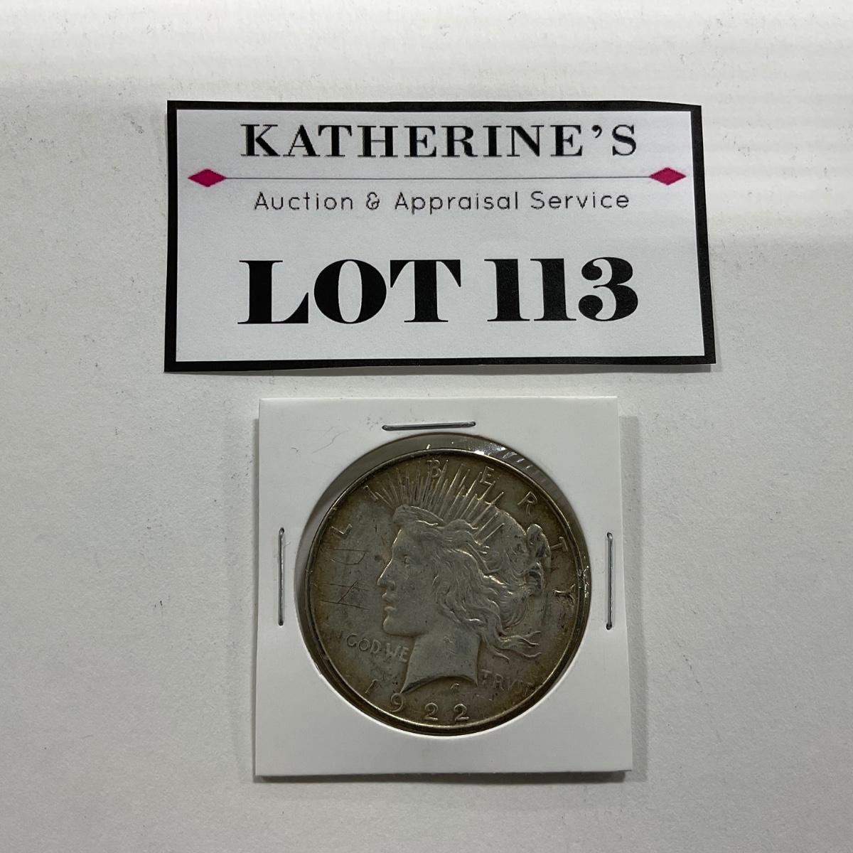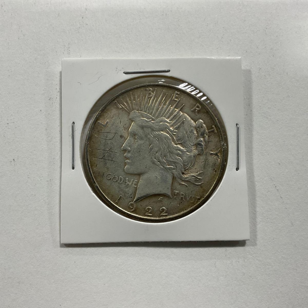 -113- COINS | 1922 Peace Dollar Initial -HD on Obverse