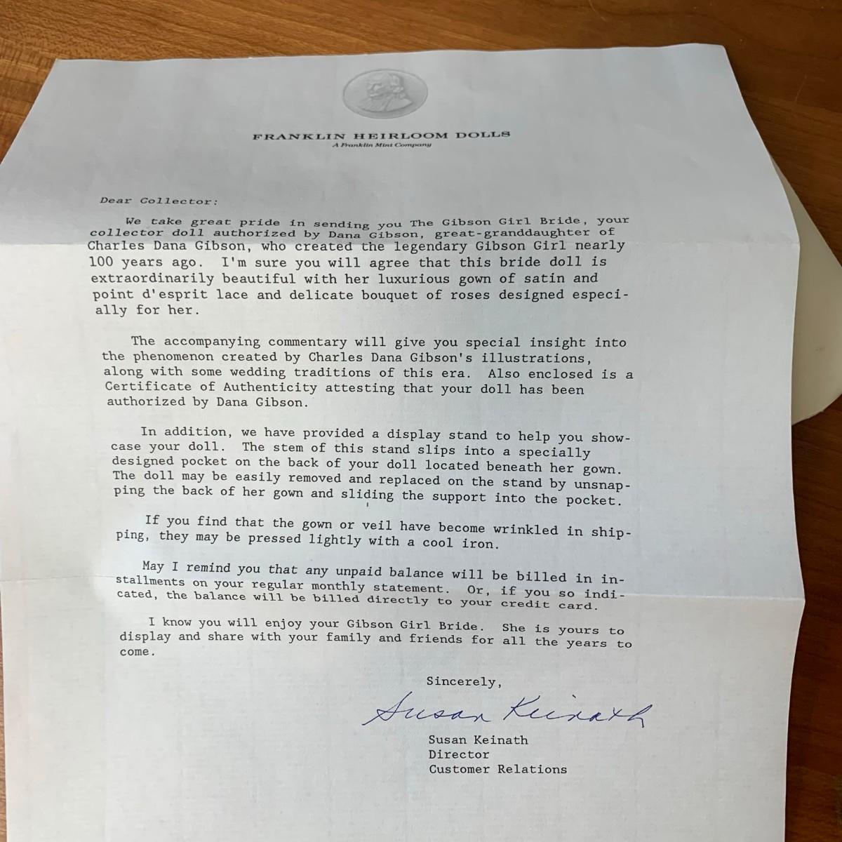 #113 Franklin Heirloom The Gibson Girl Bride Doll