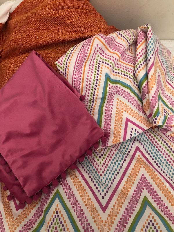 Includes a duvet cover, 2 standard shams, 2 throw pillow covers 18î and a bed skirt. Great condition. This is an ONSITE Auction all items will need to be picked up on location. Please see auction description for pick up procedures.
