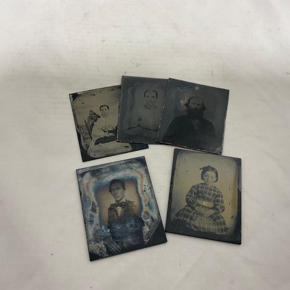 Three Civil War era antique tin types. Two Civil War era Ambrotypes. Please see photos for details and condition. ::: Shipping is available on this lot. If you require shipping you must let us know at the close of the auction. We will coordinate with you after the item has been won. Shipping fees will include insurance up to or exceeding the value of all items being mailed. If you have any questions regarding this lot please contact the auctioneer either via this website, by direct email or by phone. PICK UP TIMES and other important information can be found in the TERMS and DESCRIPTION of the auction. Please take a look for pertinent information. Thanks!