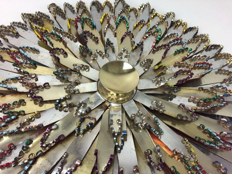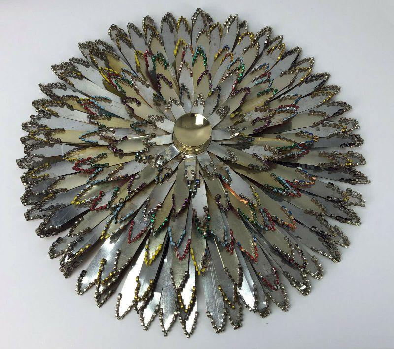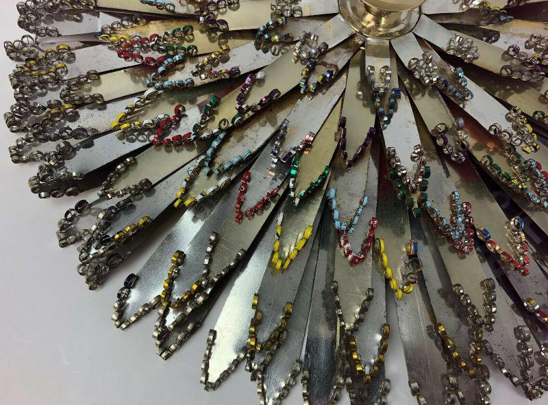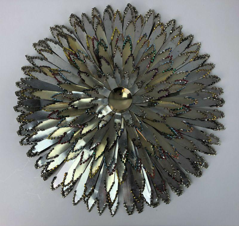 Handmade with Texaco motor oil tins circa 1962 here is a Mid Century Modern holiday craft project...This Christmas wreath measures 19.5" in diameter...Very good condition on this unique decoration...Crimped edges