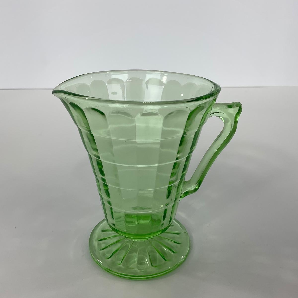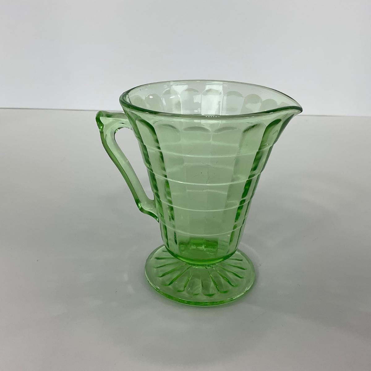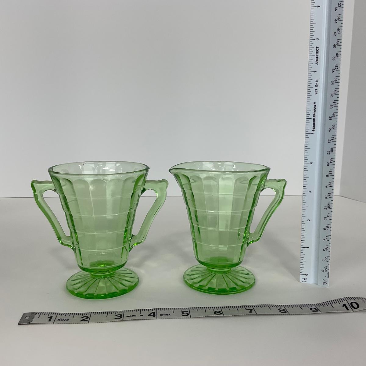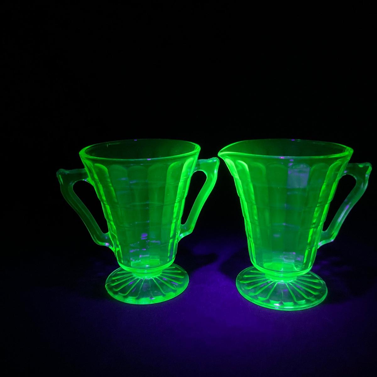 -113- URANIUM | Anchor Hocking Glass Co. Optic Block | Creamer & Sugar