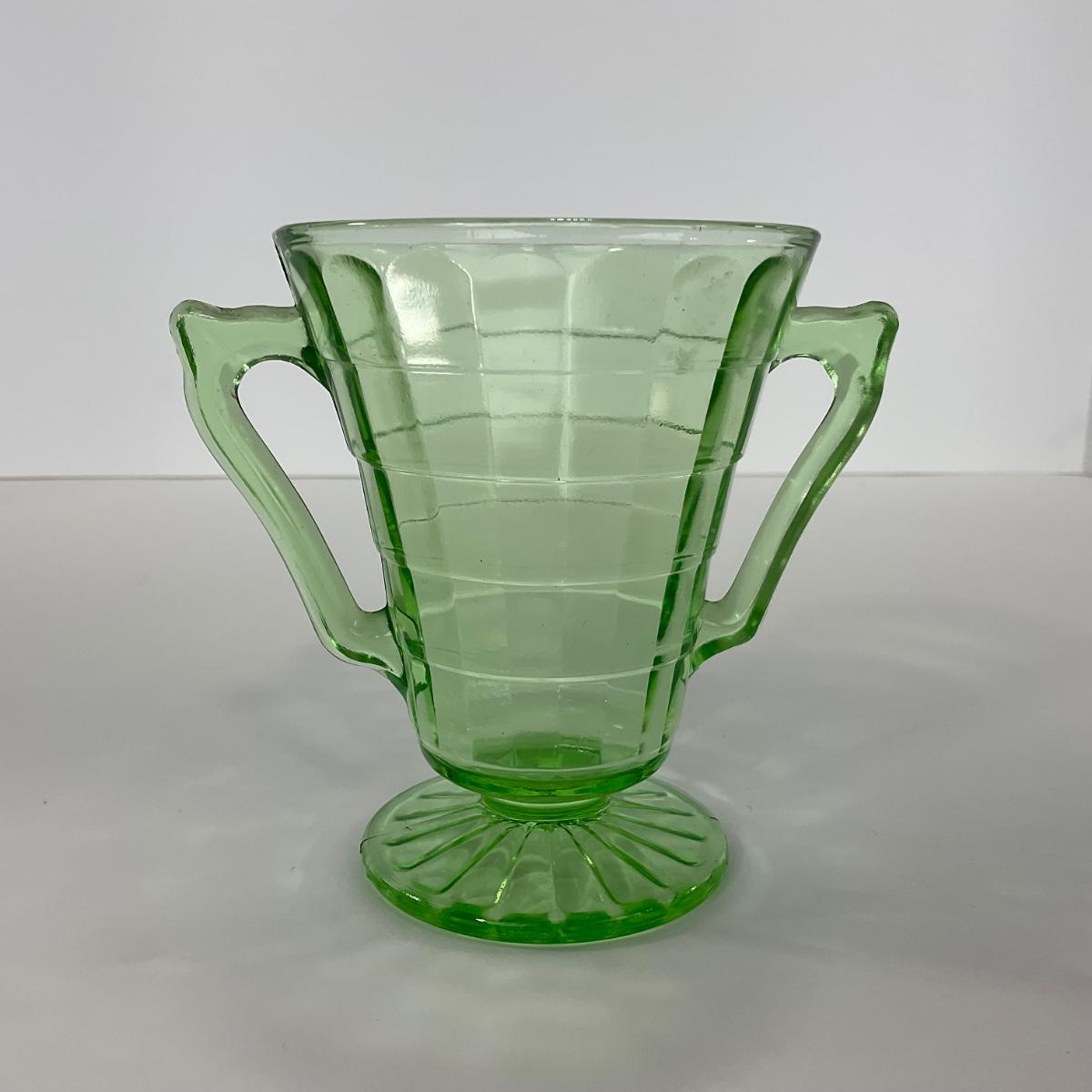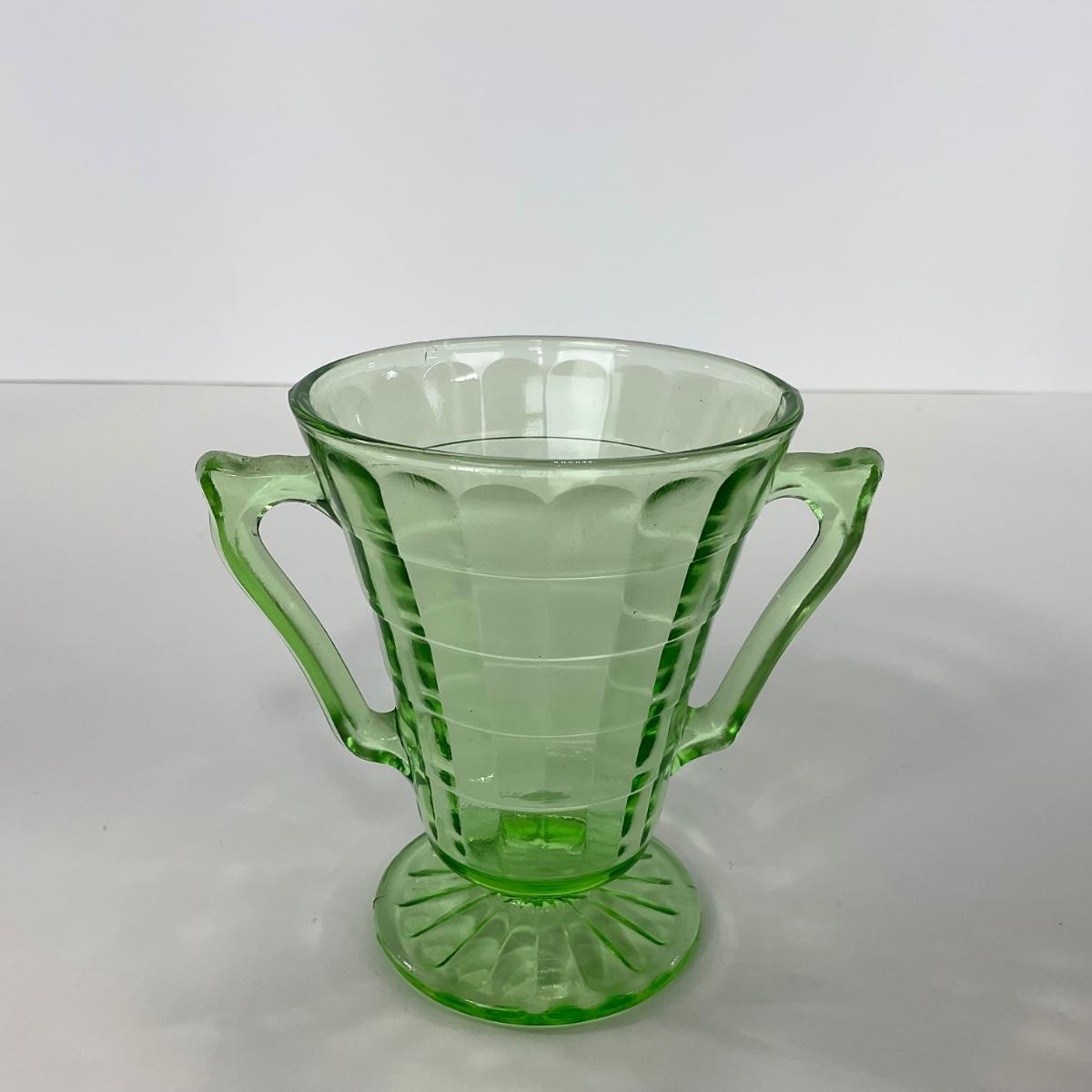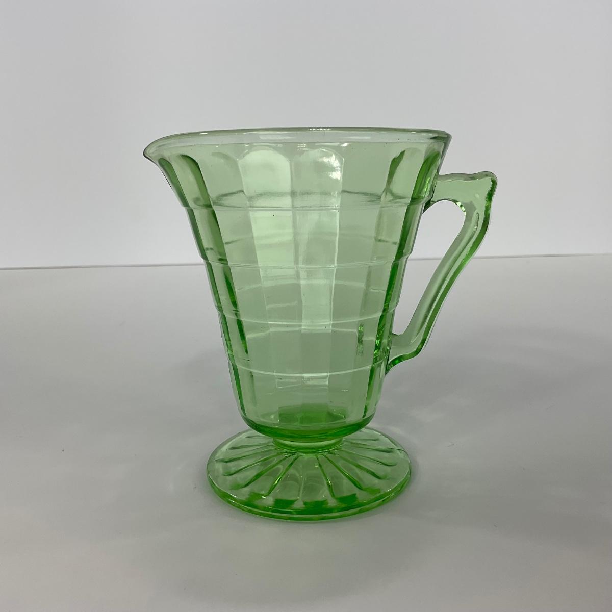 -113- URANIUM | Anchor Hocking Glass Co. Optic Block | Creamer & Sugar