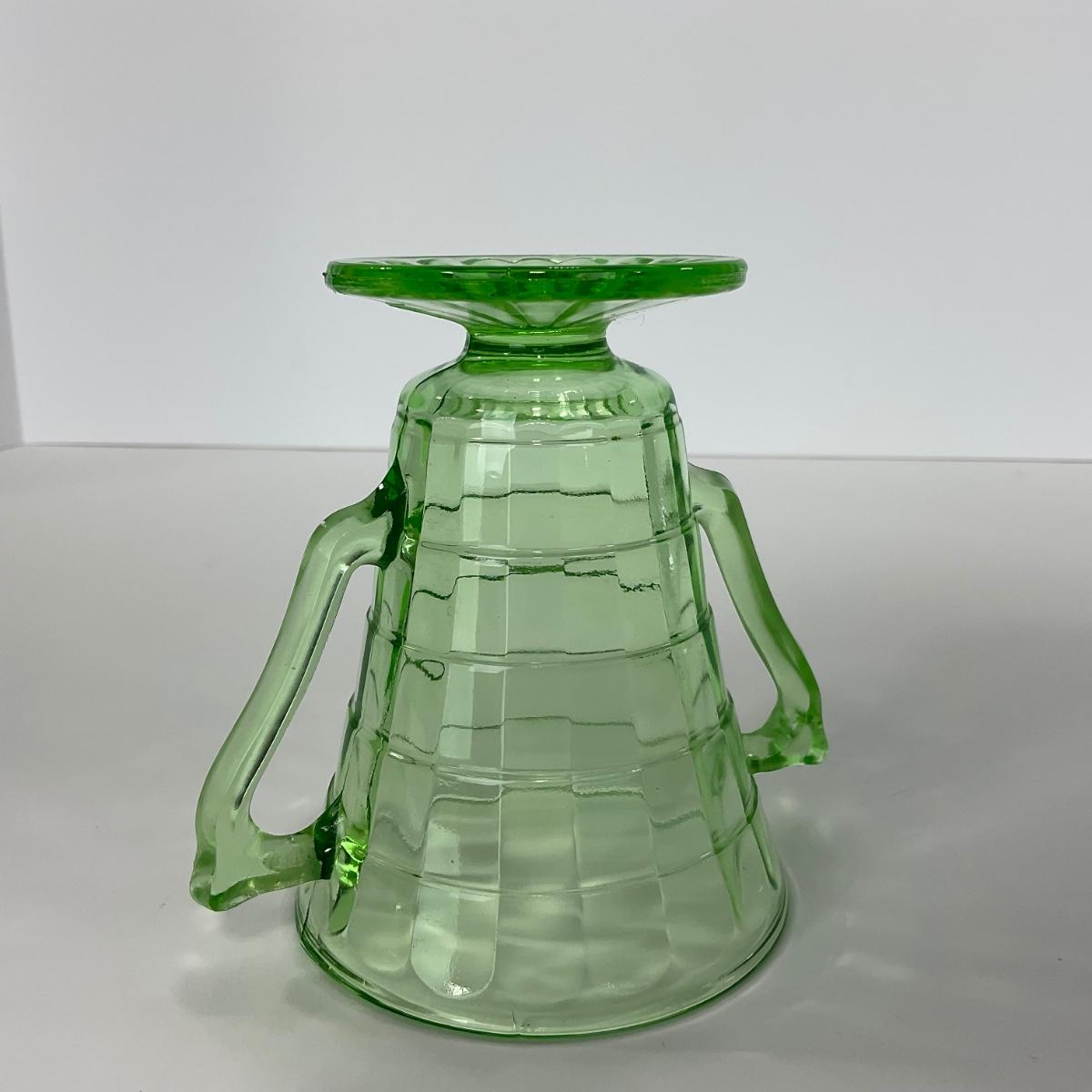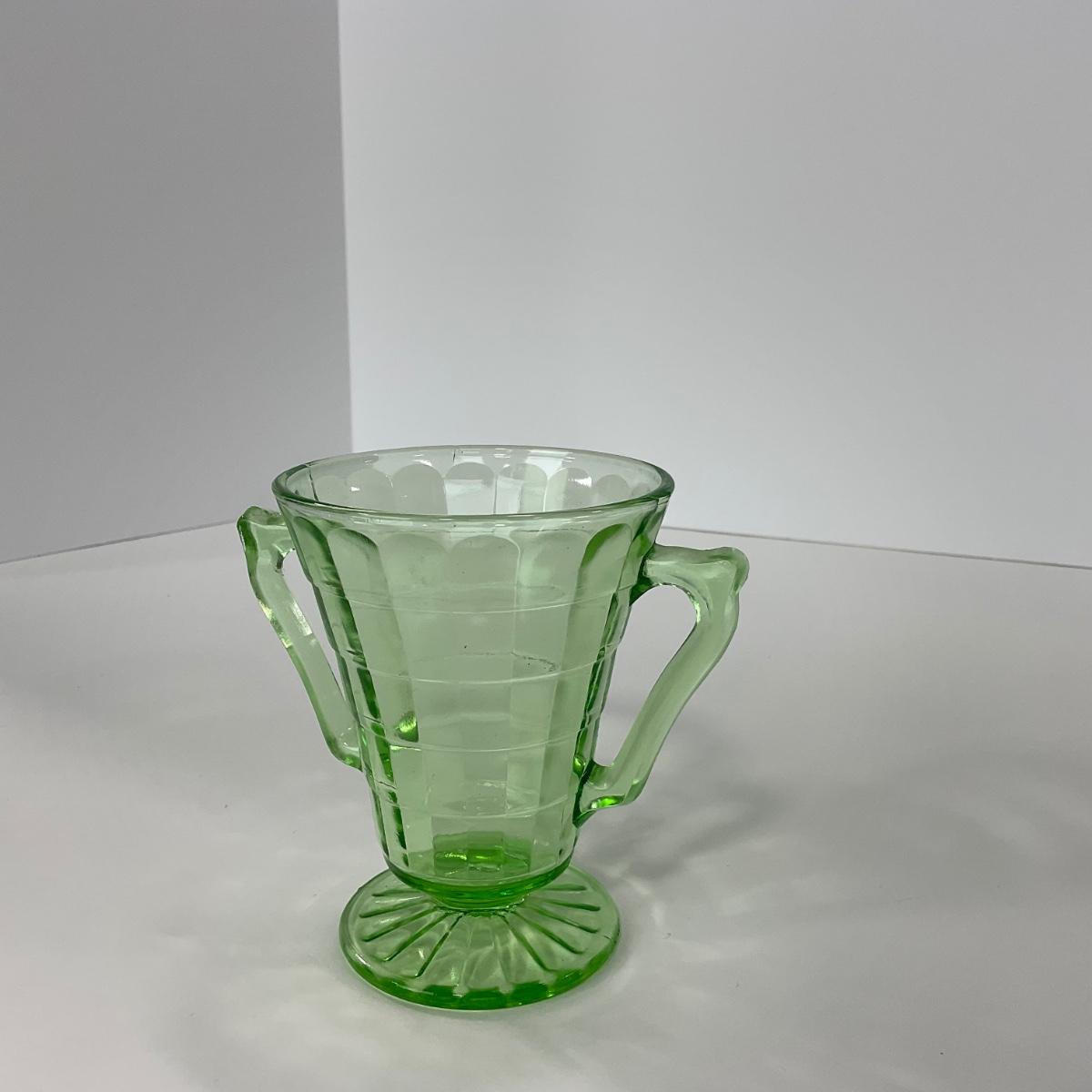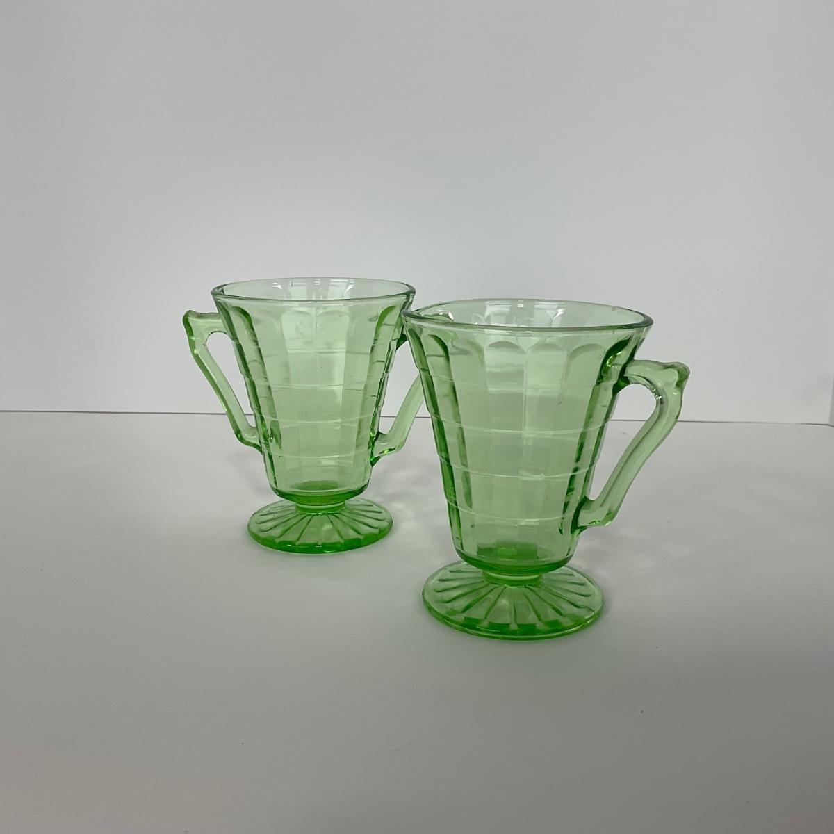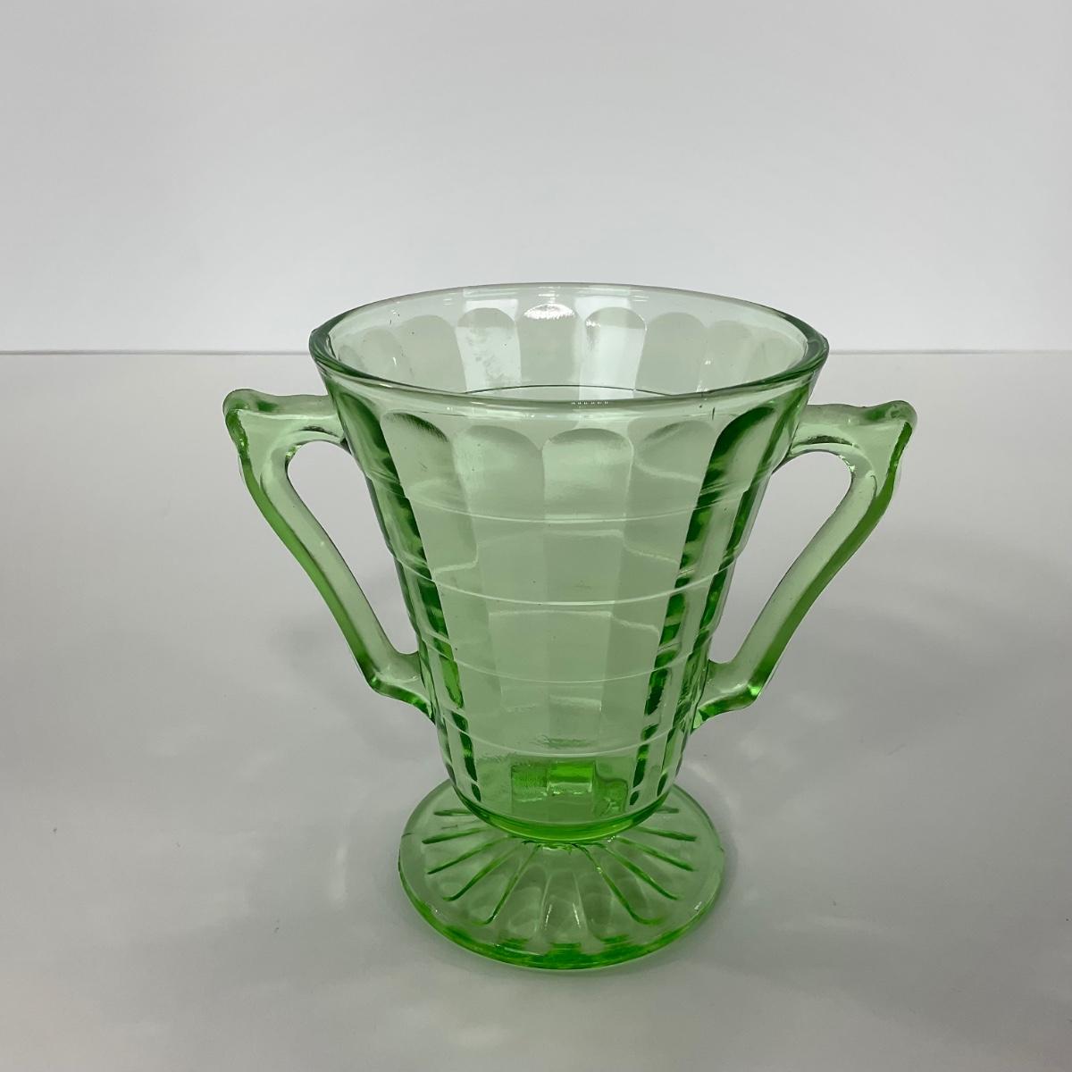 -113- URANIUM | Anchor Hocking Glass Co. Optic Block | Creamer & Sugar