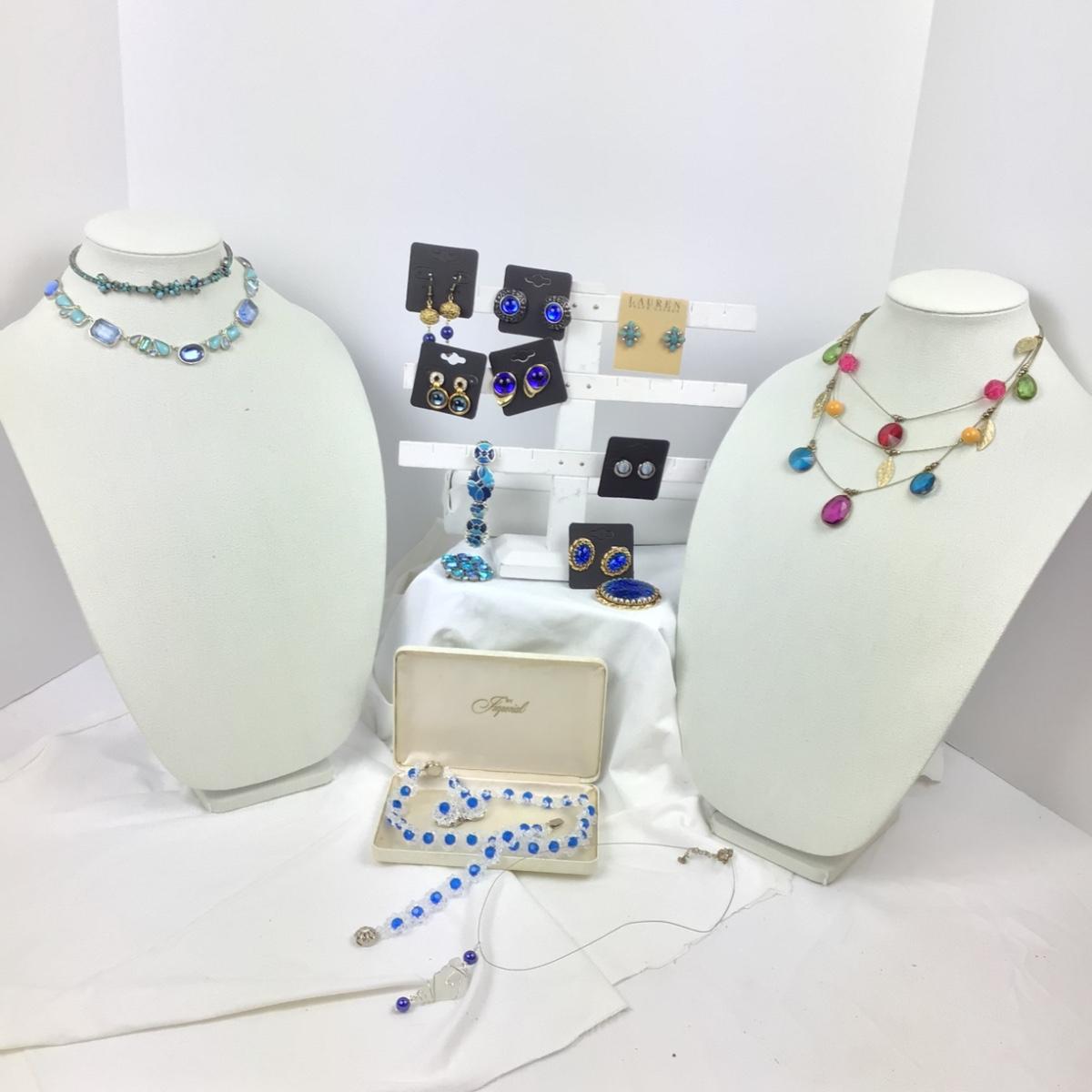 1130 Lot of Blue Colored Costume Jewelry