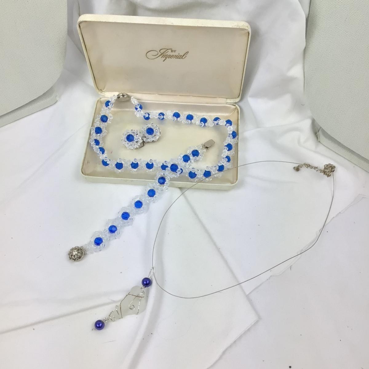 Several necklaces with earrings, pierced and clip , vintage Imperial set with necklace, earrings, and clip earrings