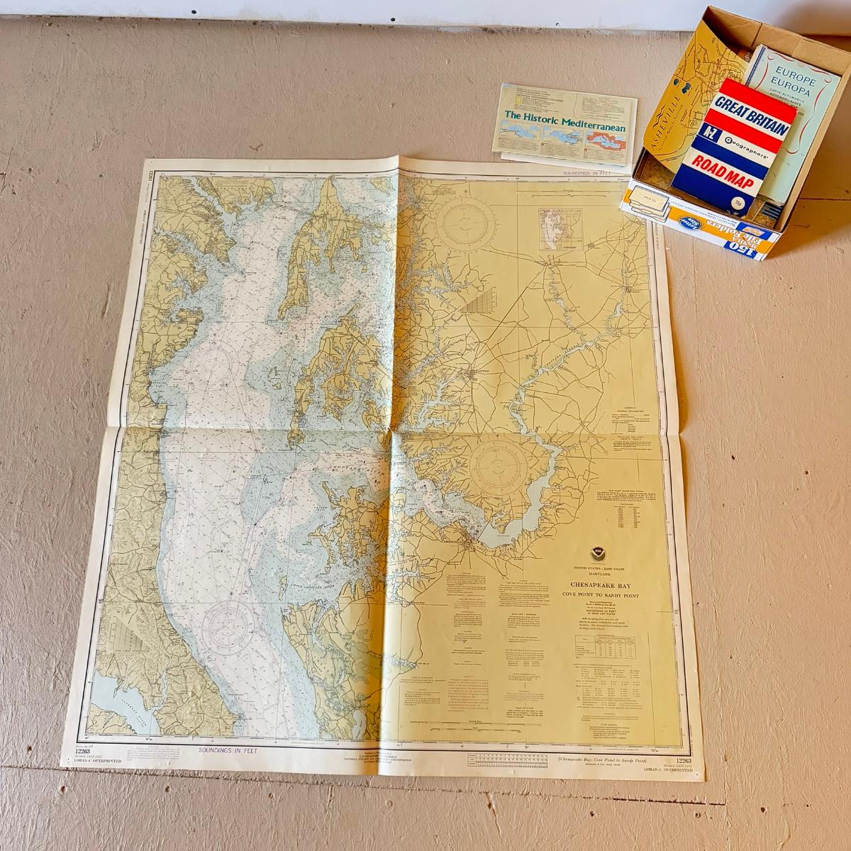 1130 Vintage Chesapeake Bay Map & Europe Maps