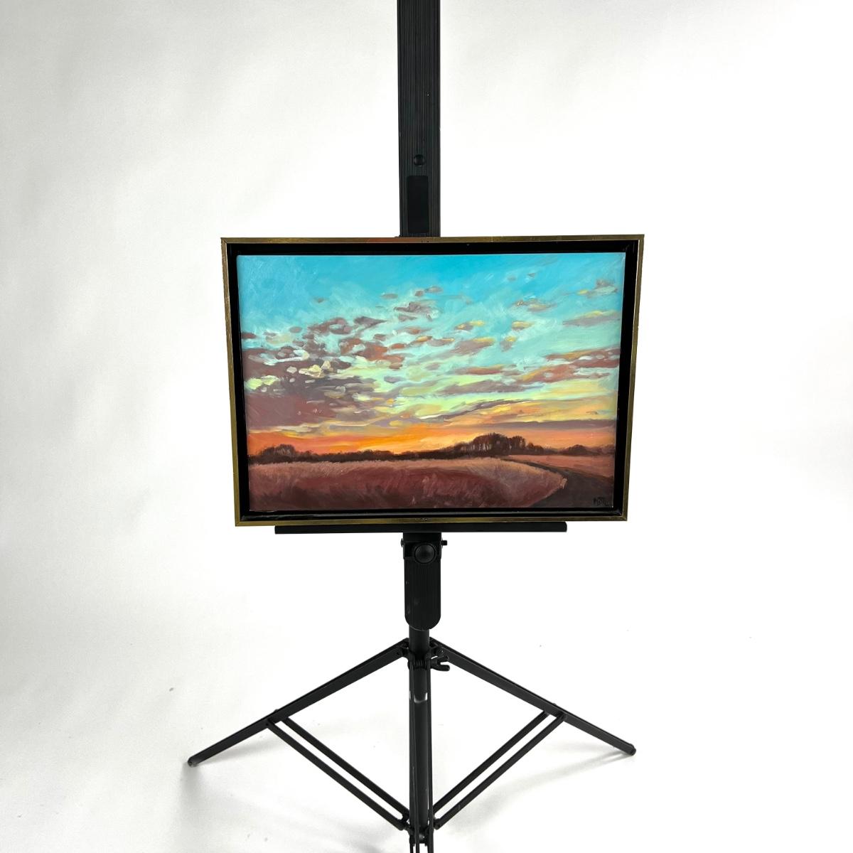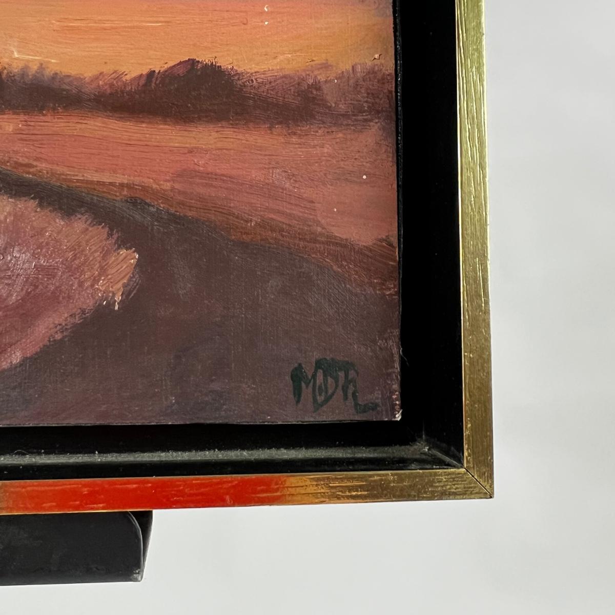 Small Vintage Original Oil Landscape Painting Signed in a gold/black floater frame.
