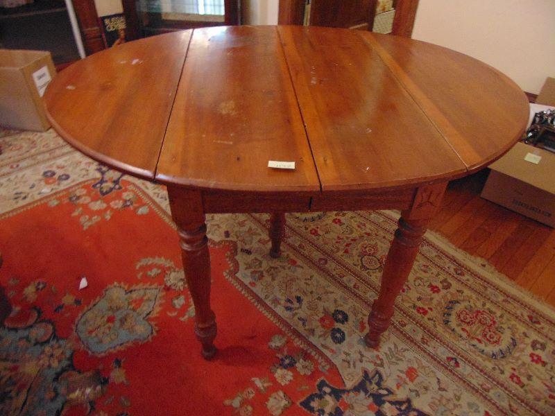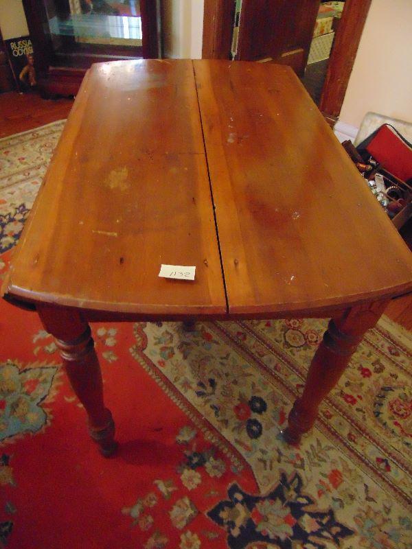 1132 Drop leaf table, two drop leaves. Five leg 51" x 42" with leaves up; 27" x 42" leaves down