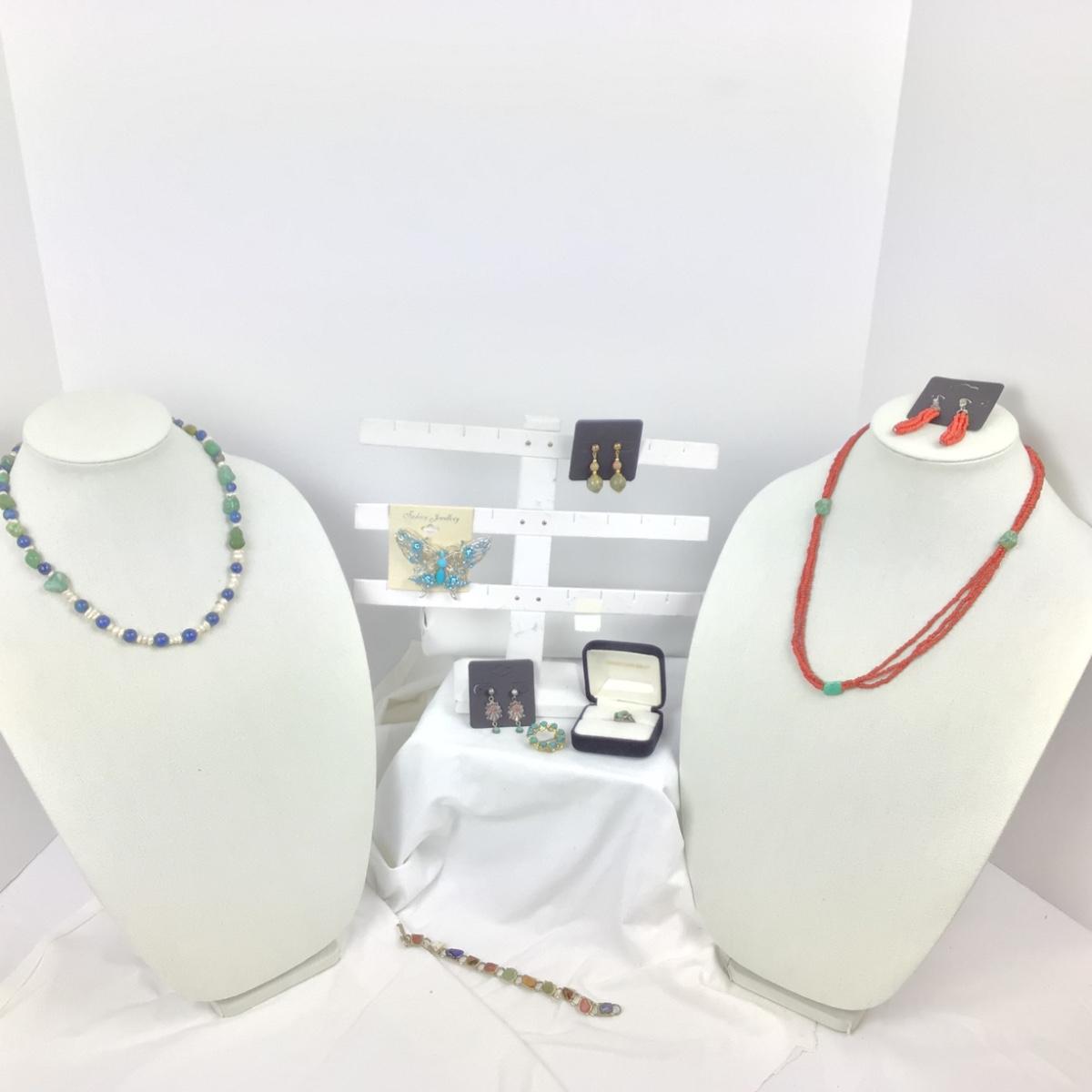 1133 Lot of Blue Lapis , Turquoise, Coral Costume and Sterling Jewlery Lot