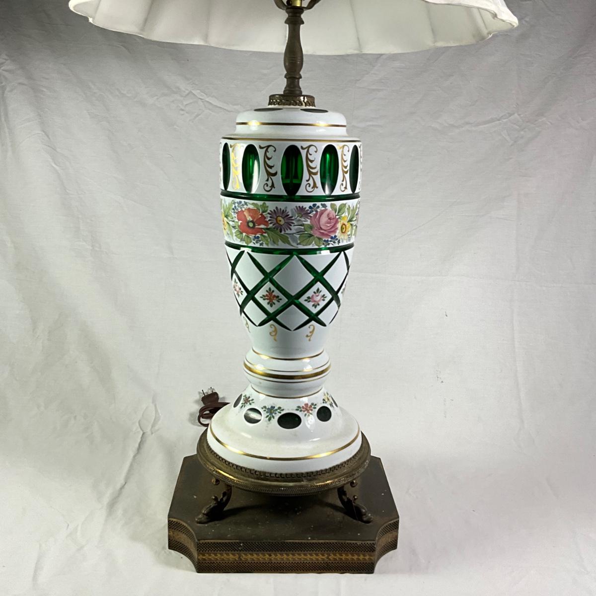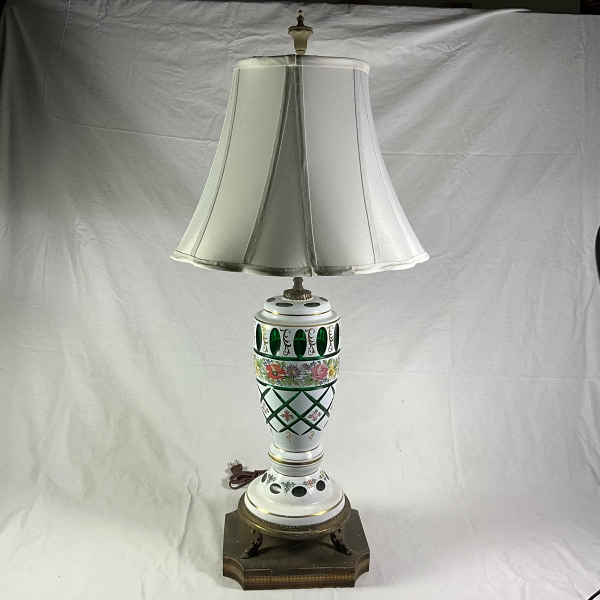 1135 Antique Bohemian Cut Glass Lamp