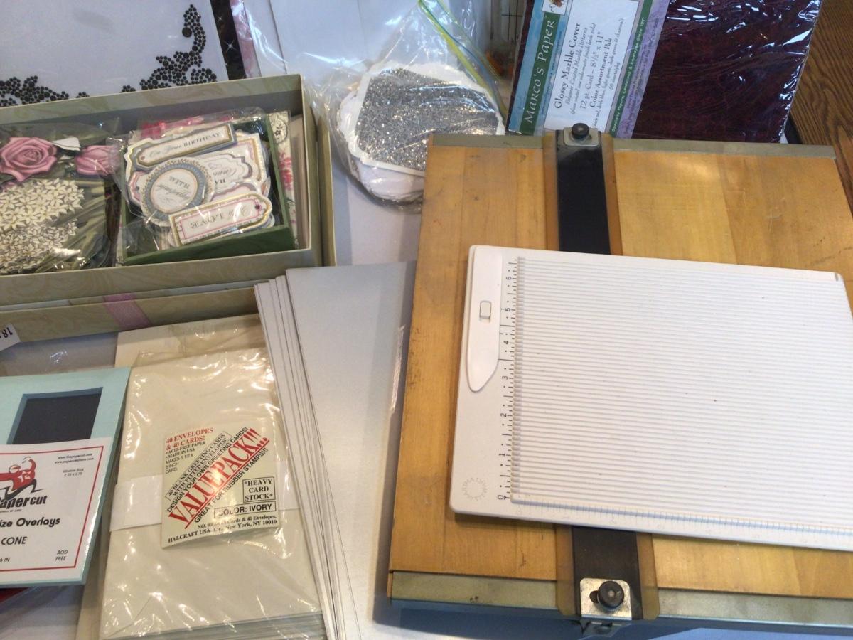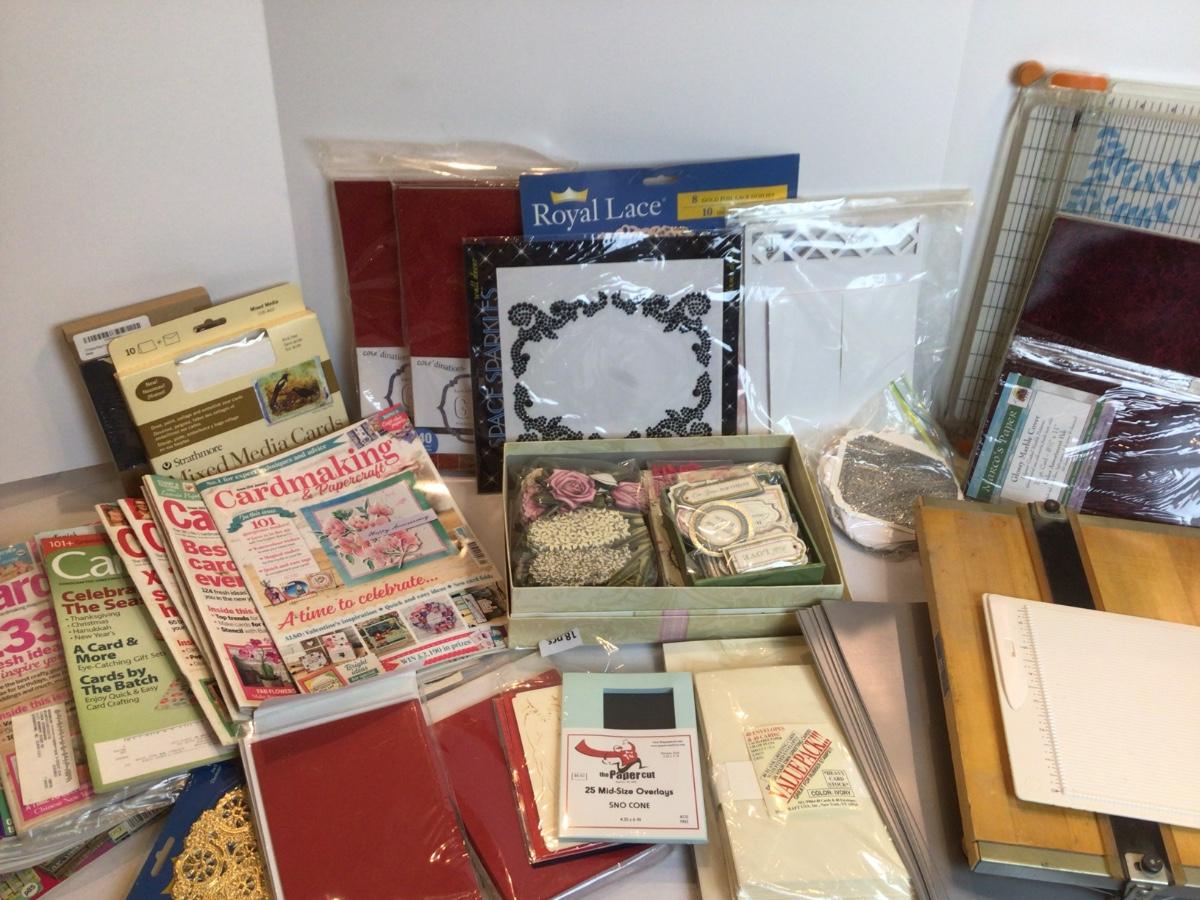 Large lot of paper, instructional magazines, paper cutters, envelopes, and more.