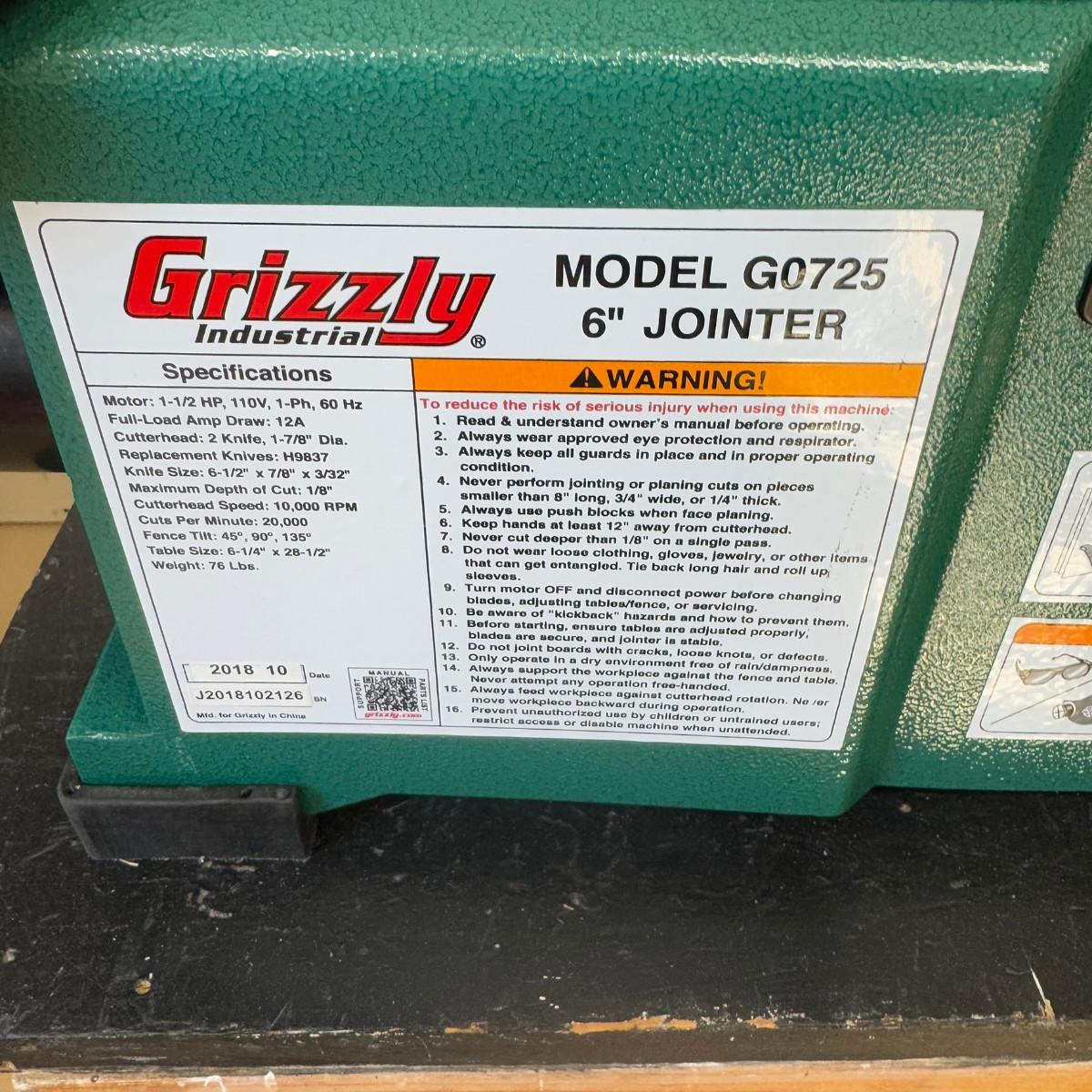 1138 Grizzly 6" Jointer G-0725 With Assessories